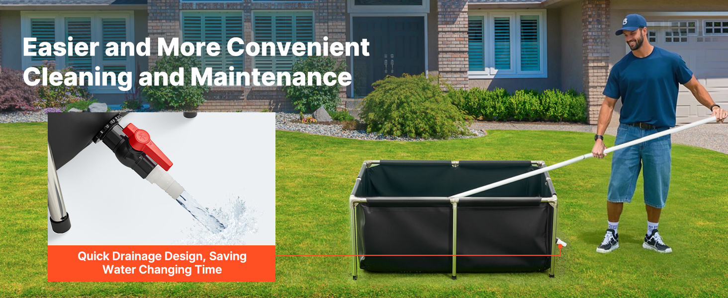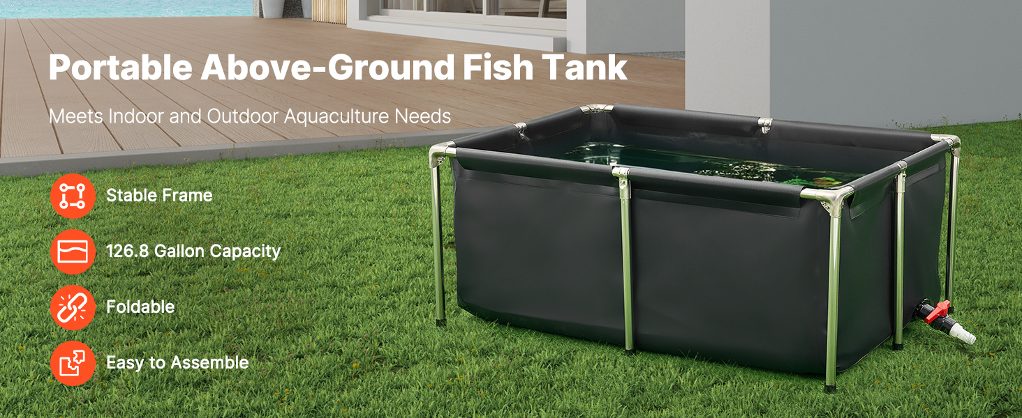 Made with durable PVC scraper cloth, this pond is wear-resistant with a seamless design to avoid leaks. The rust-resistant stainless steel frame holds 126.8 gallons, which is ideal for indoor and outdoor use for koi, goldfish, shrimp, crabs, and more.