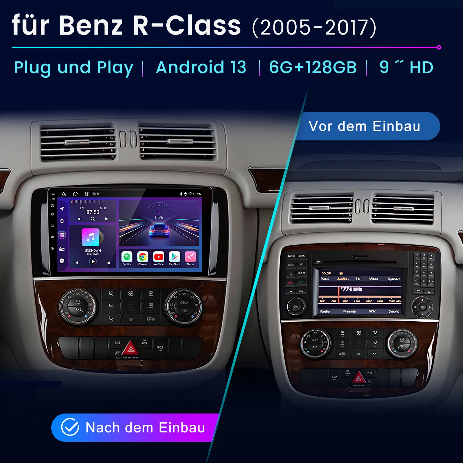 Kompatible Fahrzeuge: für Mercedes-Benz R Klasse W251 R280/R300/R320/R350/R63 von 2005 bis 2017. 8-Core High Definition 9 Zoll IPS kapazitiven Bildschirm Blu Ray Touchscreen. Speicher 6 GB (RAM) + 128 GB (ROM). Der 8-Kern-Prozessor läuft schneller. Die Farben der Autoradio Benutzeroberfläche können nach Ihren Wünschen ausgewählt werden, um Ihnen ein besseres visuelles Erlebnis zu bieten. Autoradio Android unterstützt DAB+/2 USB/OBD/DVR.