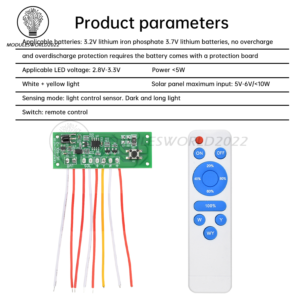 White + yellow light solar panel maximum input: 5V-6V / <10W