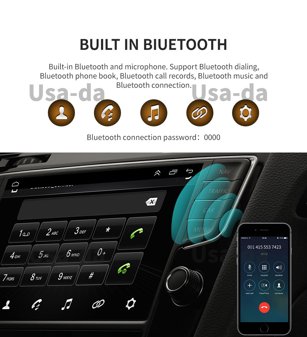 Bluetooth: Bluetooth 5.0, Bluetooth hands-free, support phone book and search functions, support A2BC Bluetooth music