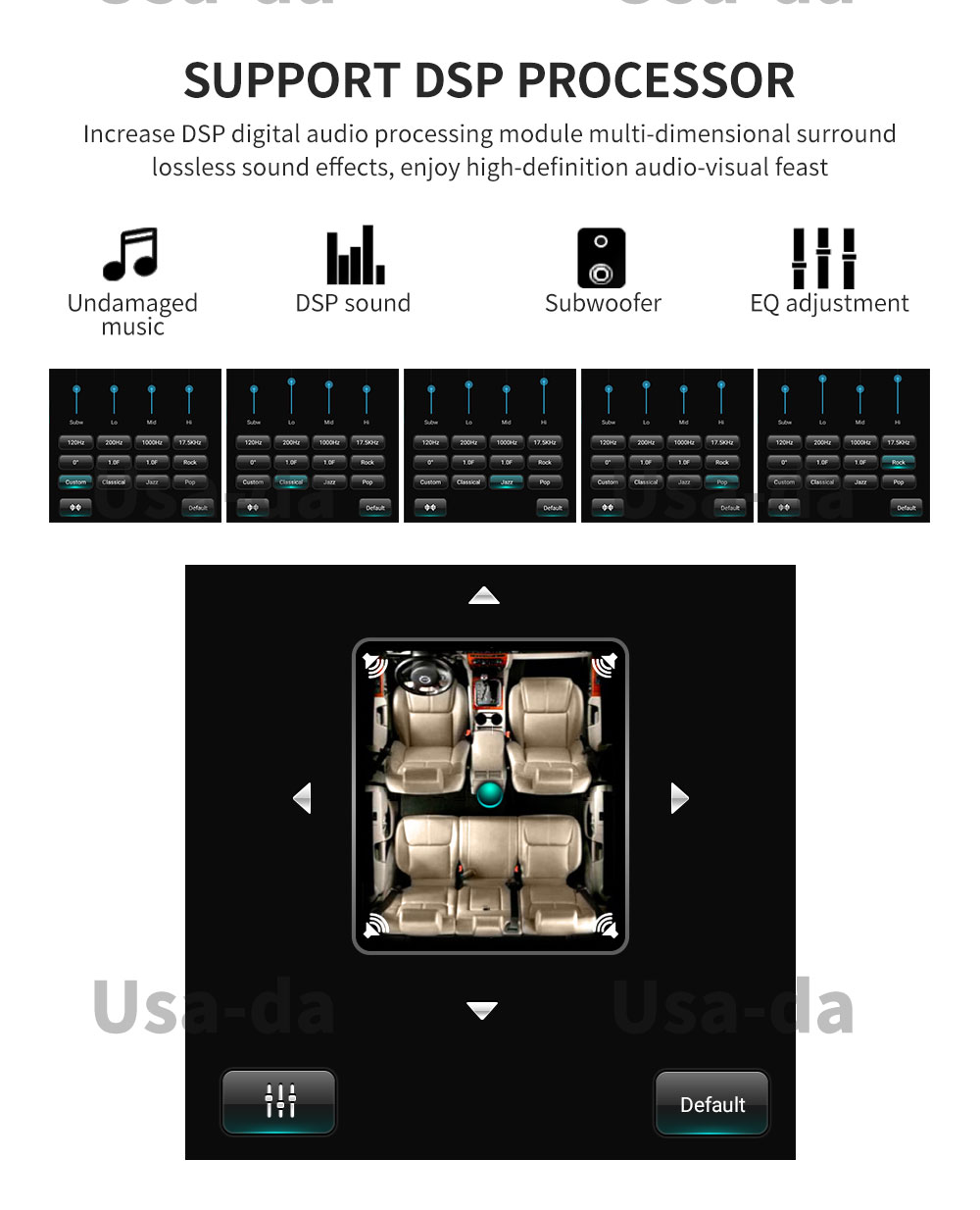 Audio output: 16-segment EQ adjustment DSP tuning, original imported TDA7388 power amplifier IC, output power 45W*4