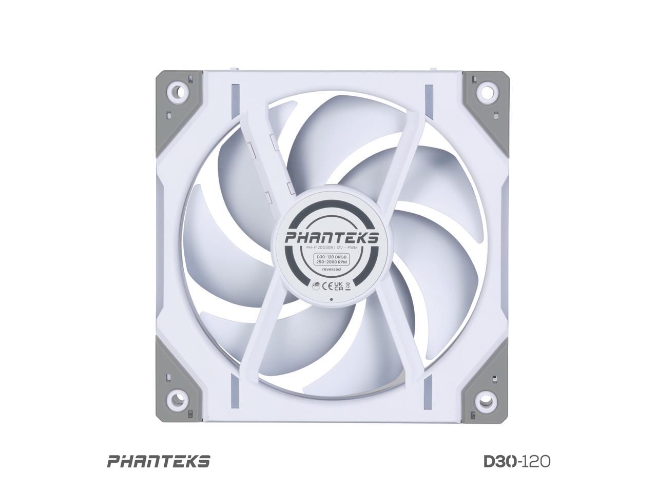 Phanteks D30-120 DRGB PWM FAN, Reverse Airflow Model, Premium D-RGB Performance Fan, ARGB/DRGB lighting, Daisy-chain Fan Linking system, White