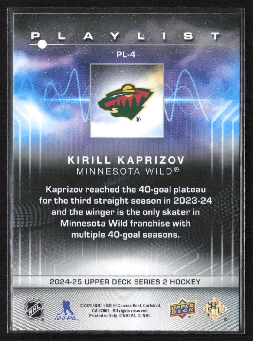 | 2024-25 Upper Deck Series 2 Playlist Kirill Kaprizov Minnesota Wild #PL-4 | ||||||||||||||||||