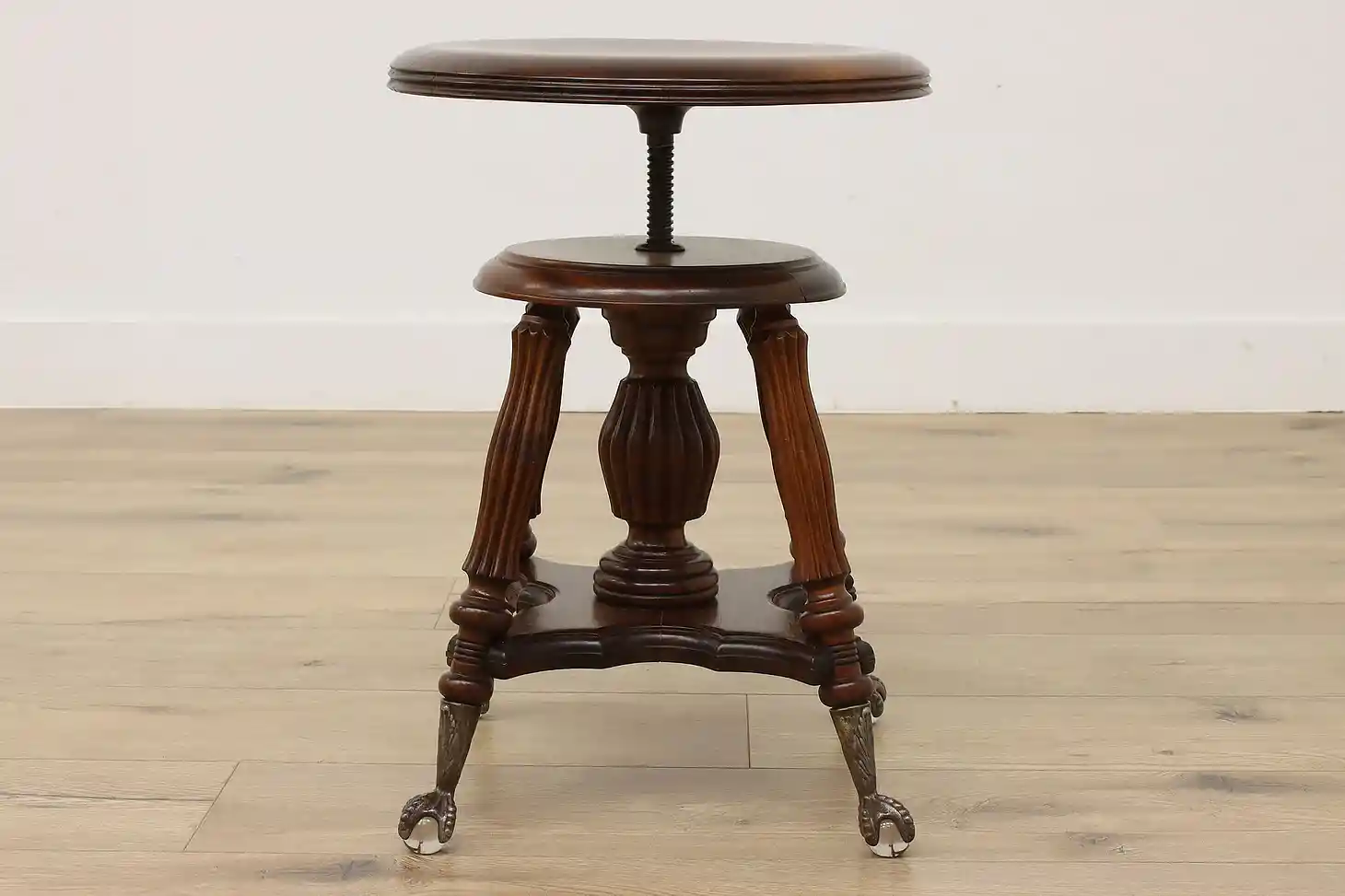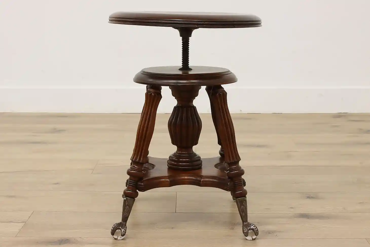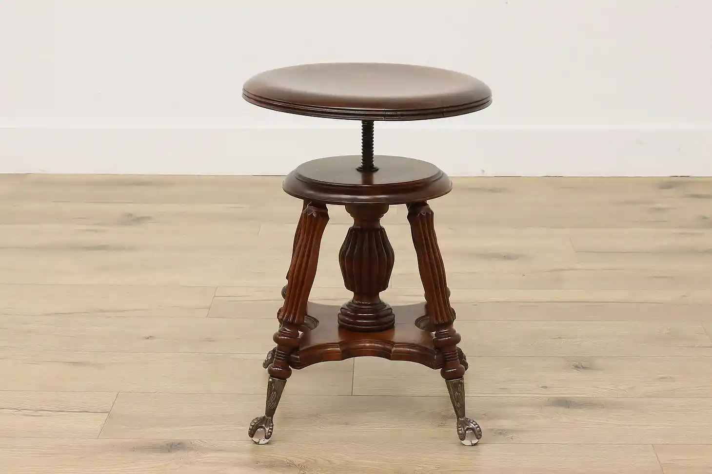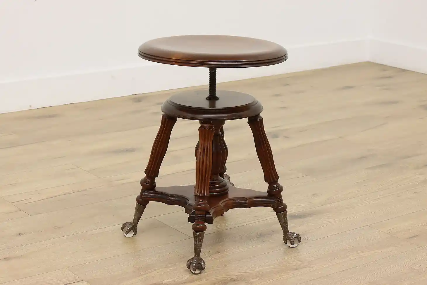 Play the organ or piano in style with this Victorian period stool with its fancy glass ball feet.
