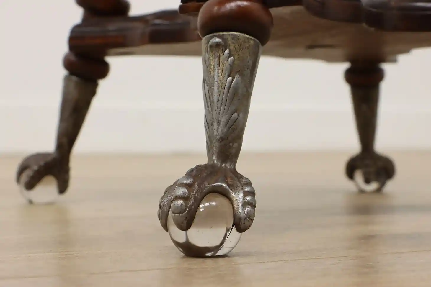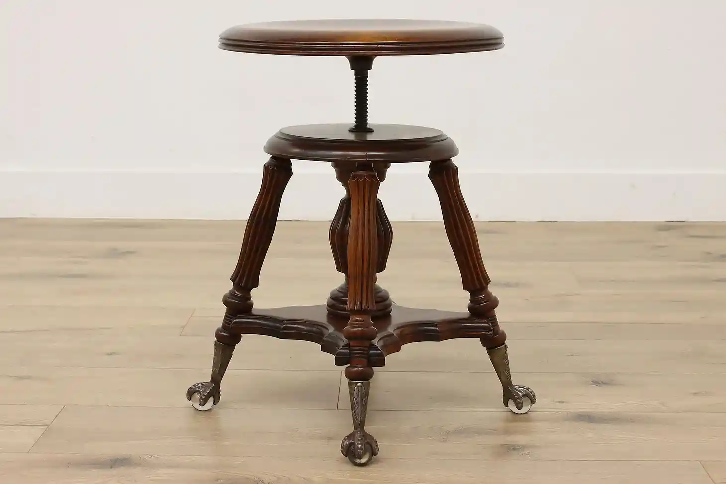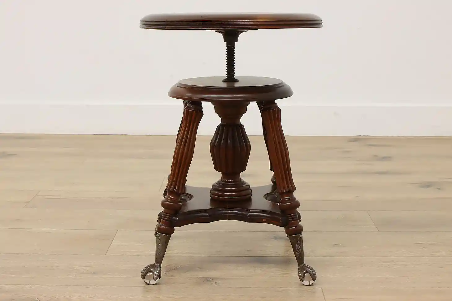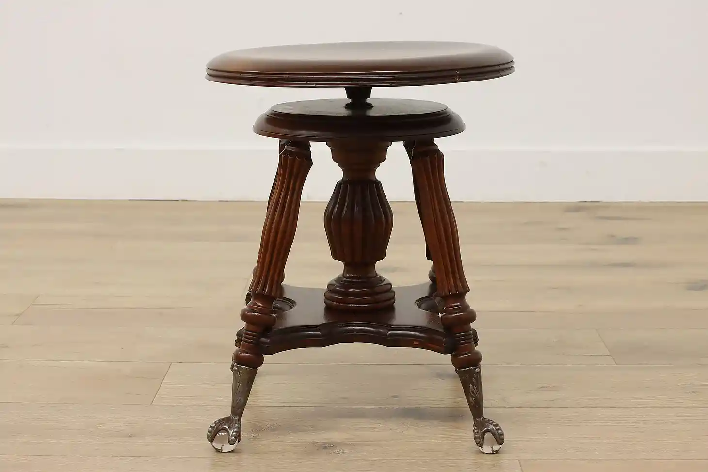 Play the organ or piano in style with this Victorian period stool with its fancy glass ball feet.