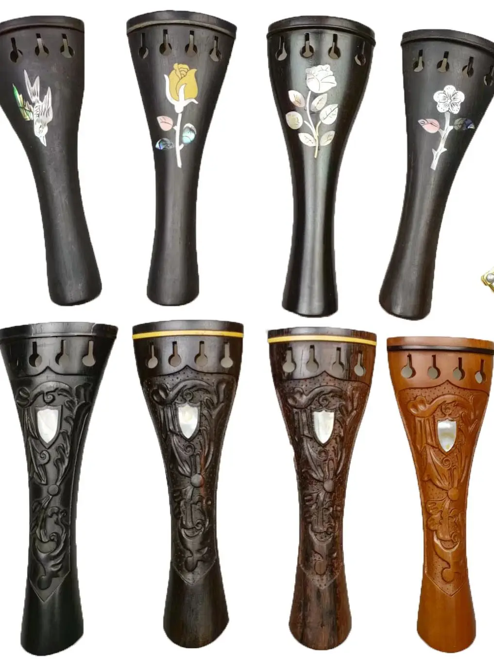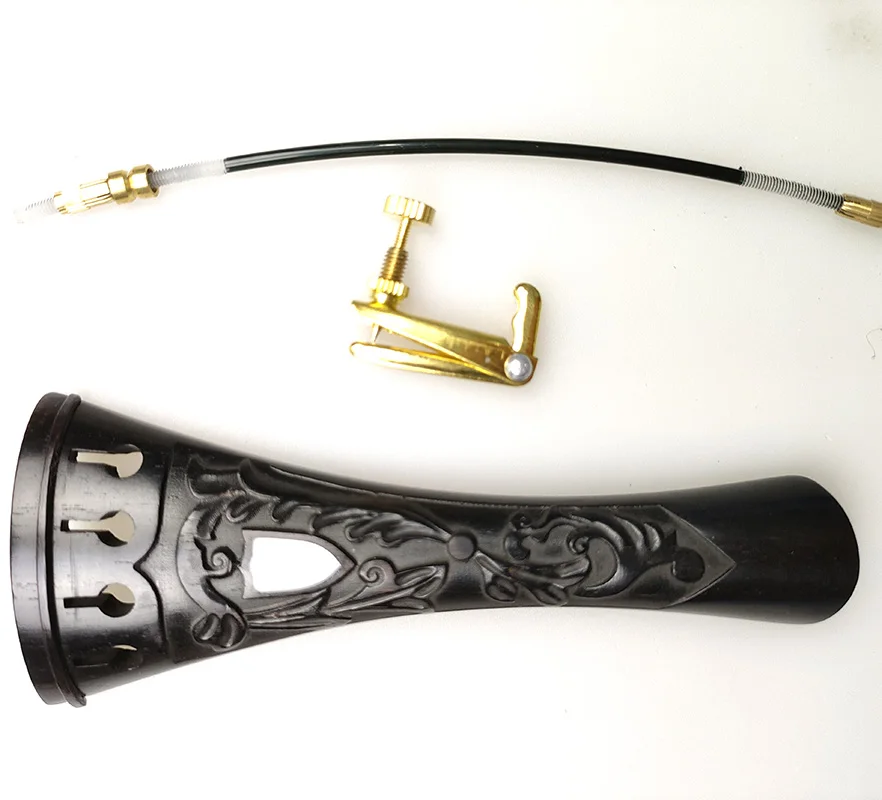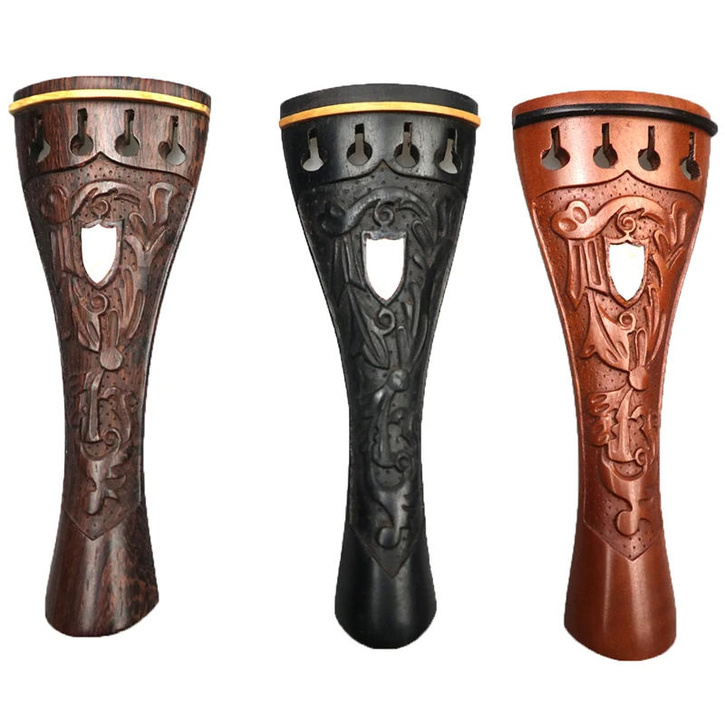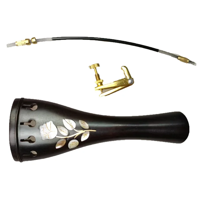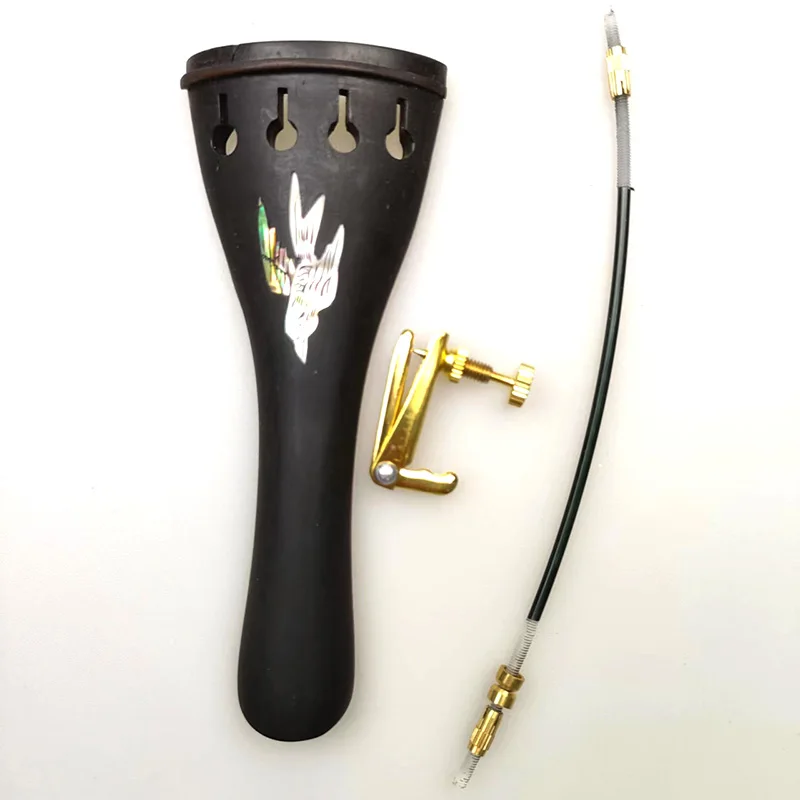 1pcs Ebony Wood Violin Tailpiece With Gut Finetuner,Full Size Tailpiece for 4/4 Violins Carved Inlay Pearl Shell
