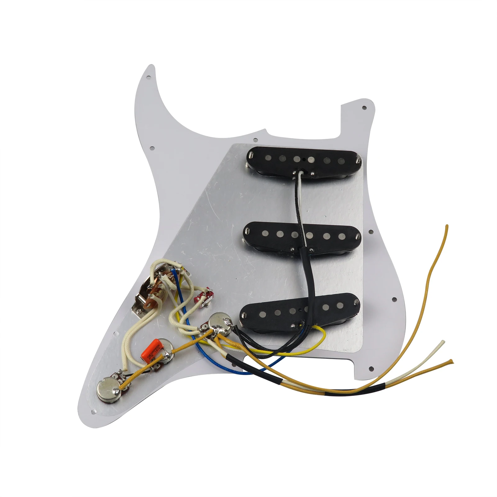 With a 3 Ply Pickguard, a recessed mini toggle for seven-way switching, and pickups designed to perfectly emulate the tone that shaped the sound of rock, this setup is sure to impress. Based off of the iconic Black Strat, the tone from this loaded pickguard will be astonishingly familiar.