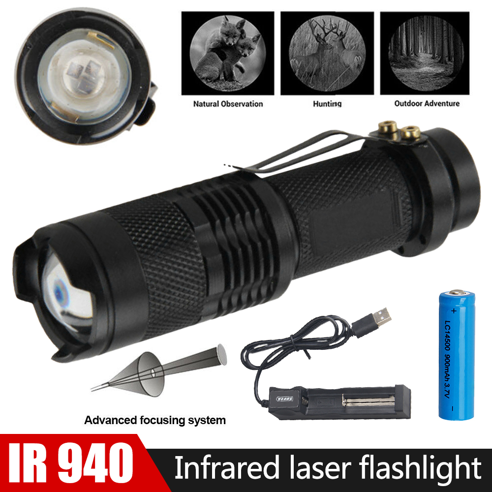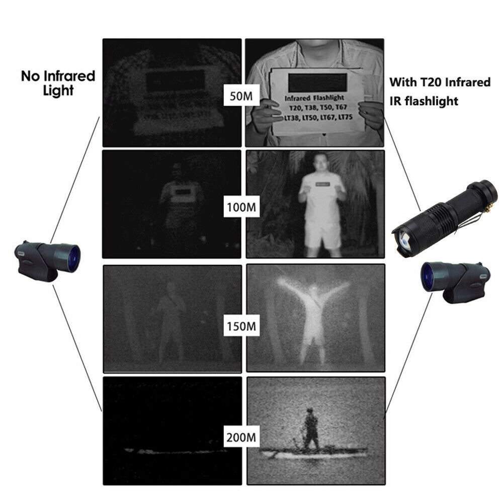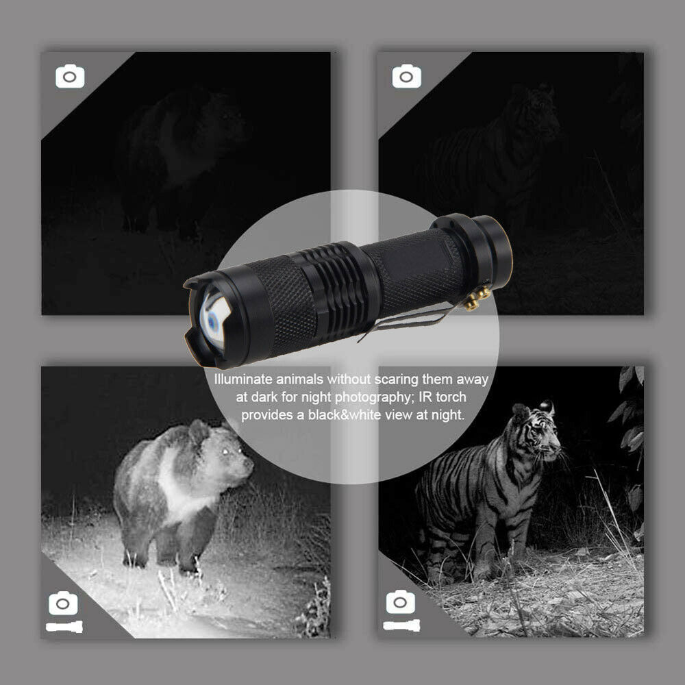 The LED chip of this flashlight turns red to the naked eye when the light is on. However, the light beam must be detected by night vision devices or non-IR filter cameras