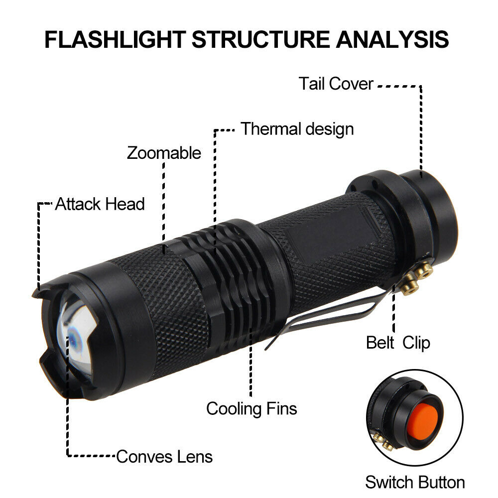 FOCUS ADJUSTABLE & WITH HIGH QUALITY DESIGN: Zoom in / zoom out to adjust the suitable light area. The body is made of strong aluminum alloy, which is durable and long-lasting.