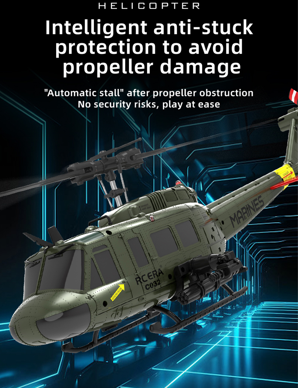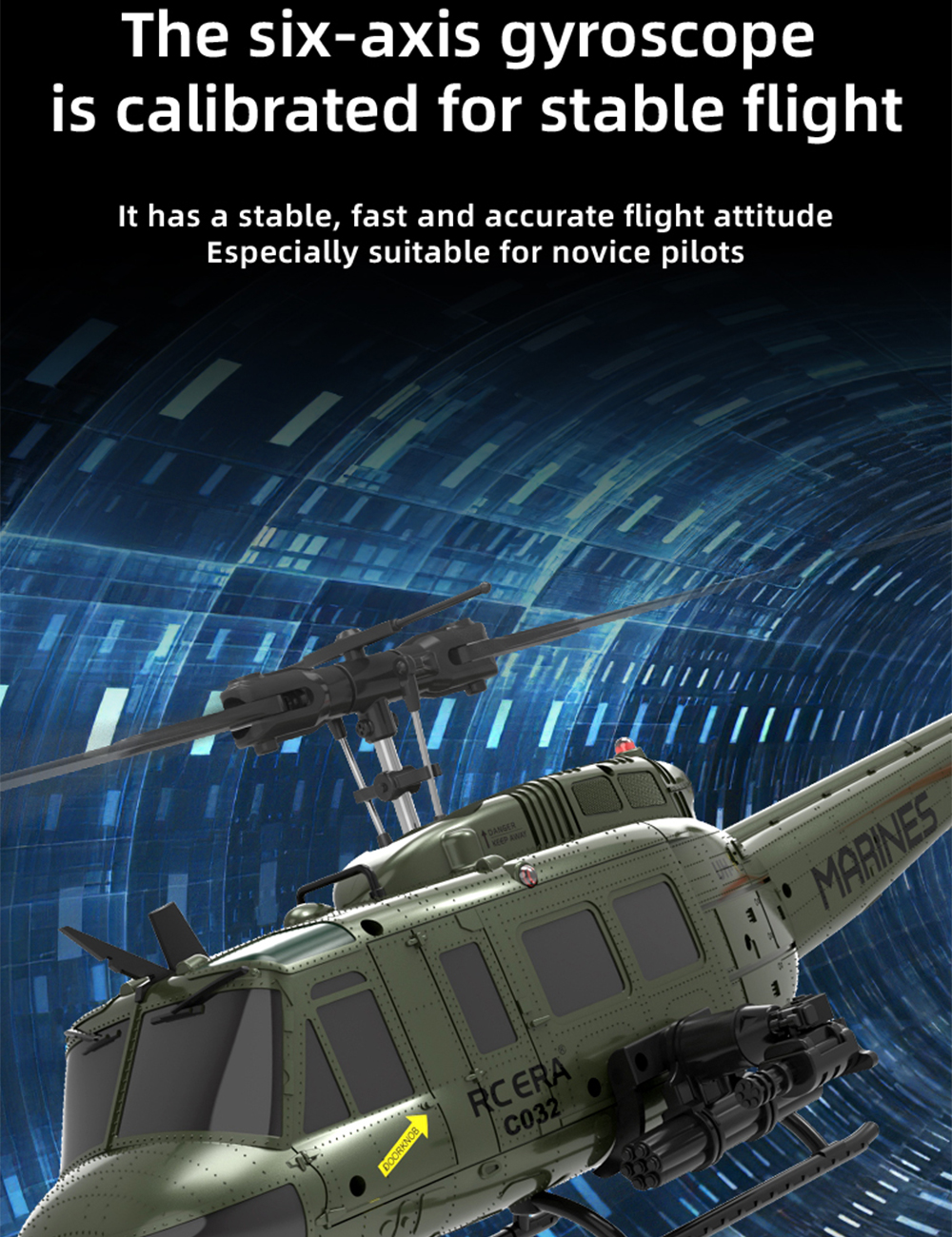 RC ERA RC Helicopter C032 1:48 Huey Helicopter UH-1 6-axis Gyro 6 Channel 3D Brushless Motor Remote Control Aircraft