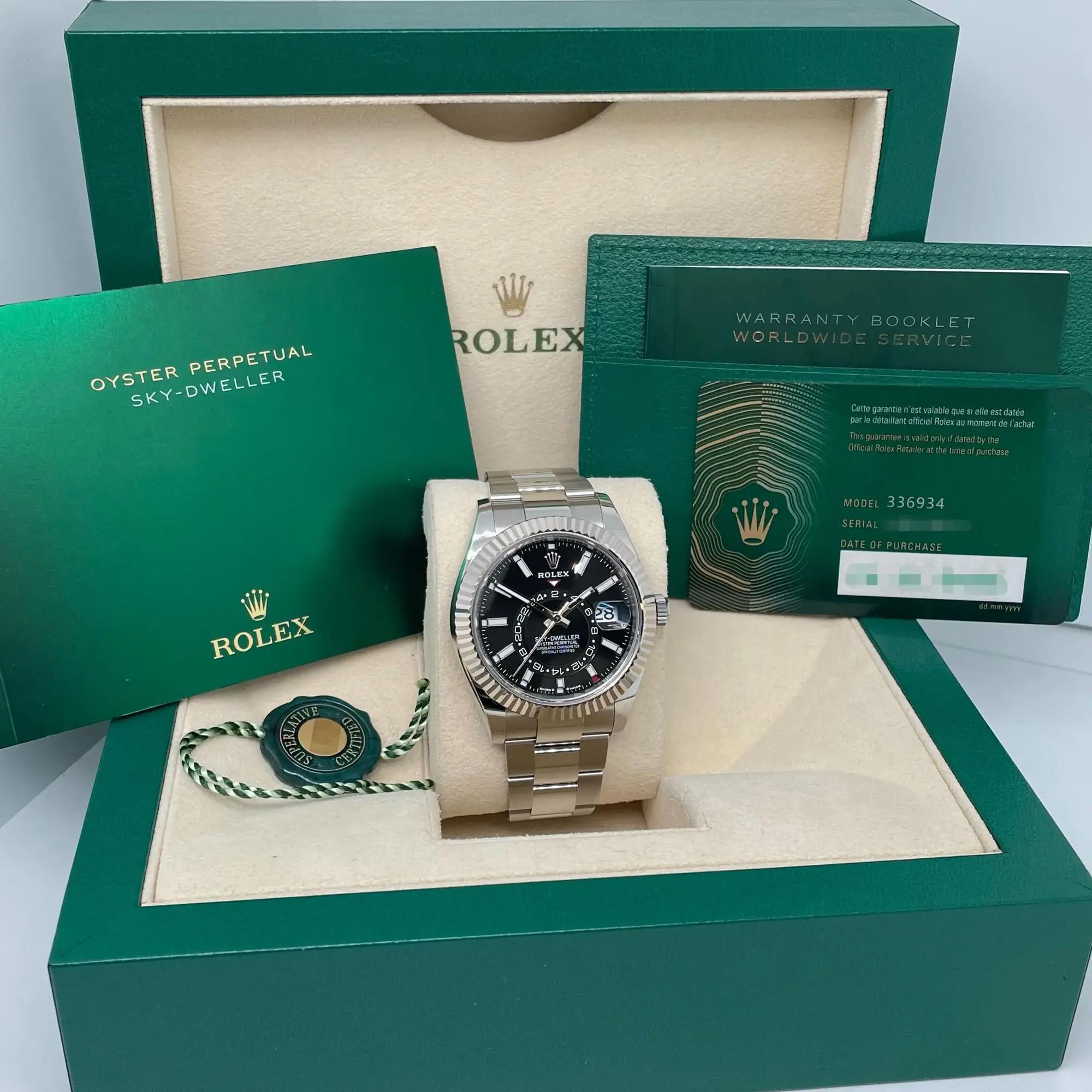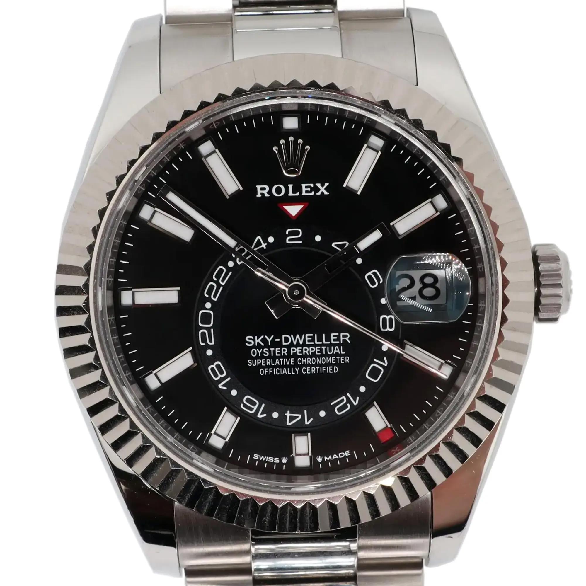 2020s Mint Rolex 336934 Sky Dweller 42mm 18K White Gold Steel Black Dial Watch