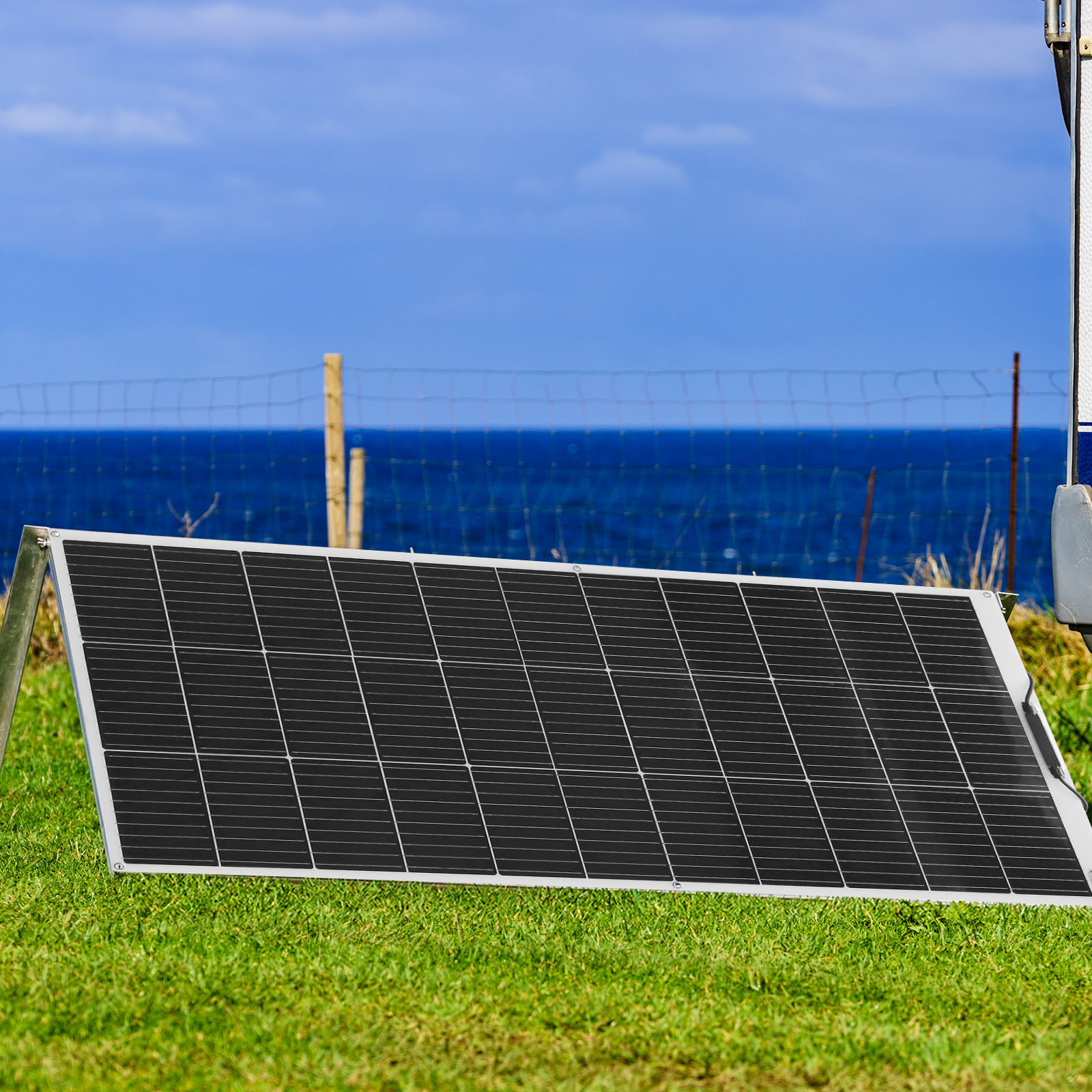 [Tragbar] Das Solarmodul besteht aus fortschrittlichen Polymermaterialien, die 50% leichter als herkömmliche Solarmodule sind und leicht zu tragen sind. Es gibt 6 Kupferlöcher für eine einfache Installation.