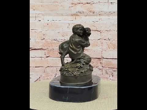 Expertly handcrafted using the traditional lost wax method, this sculpture is made from 100% genuine bronze and finished with a rich brown patina that highlights its finely rendered details. From the boy’s gentle expression to the textured fur of the dog, every element of this piece is brought to life with meticulous craftsmanship. The statue is securely mounted on a polished black marble base, providing a striking contrast and elegant presentation.