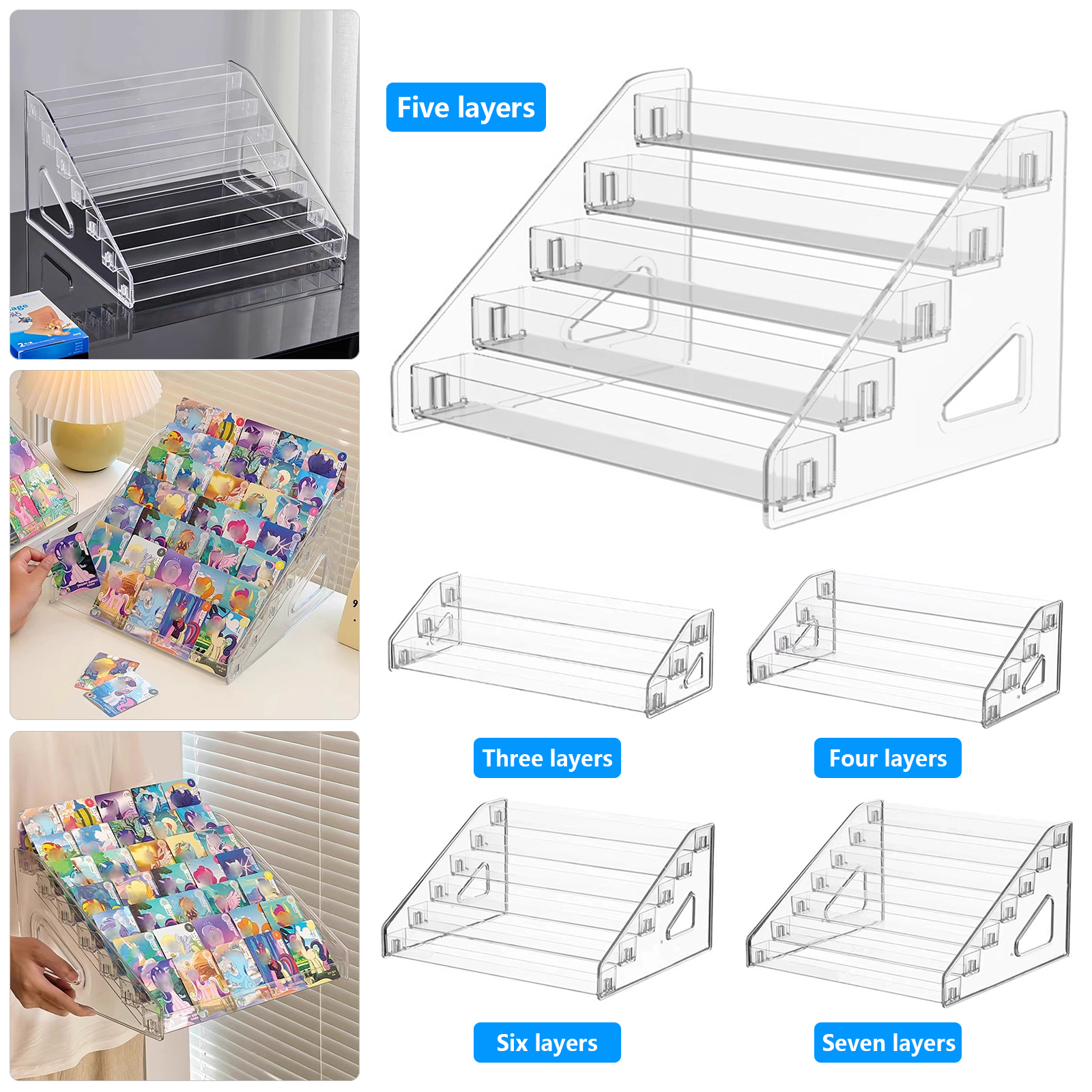 Stepped Design: It can easily organize your items, whether they are trading cards or cosmetics, allowing you to clearly see the layers in which they are stored.