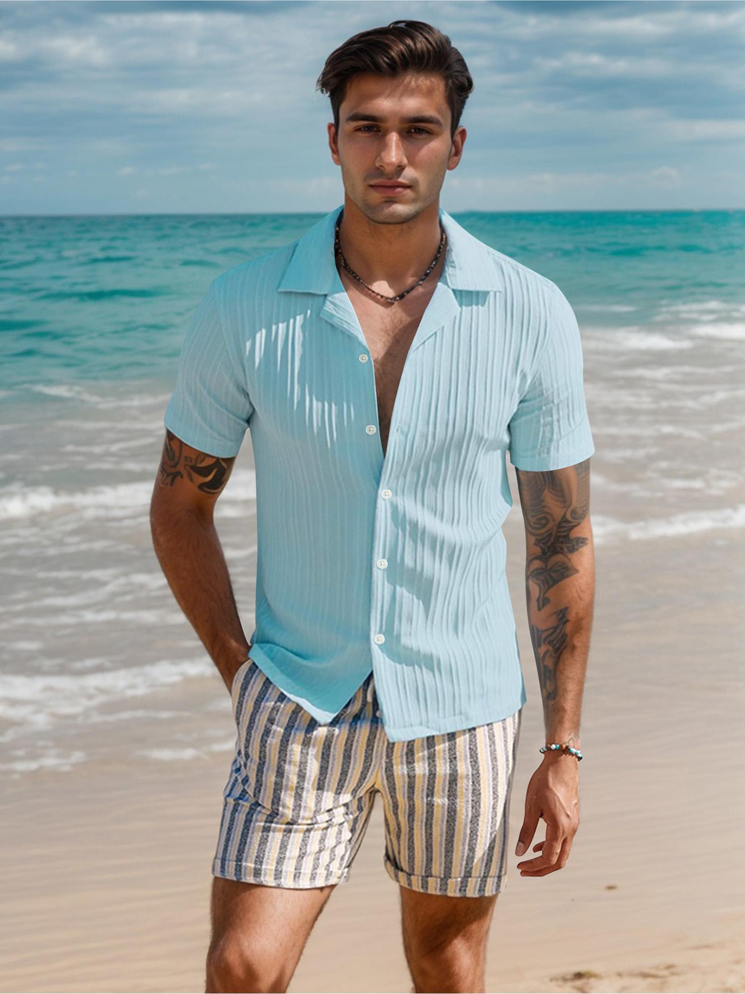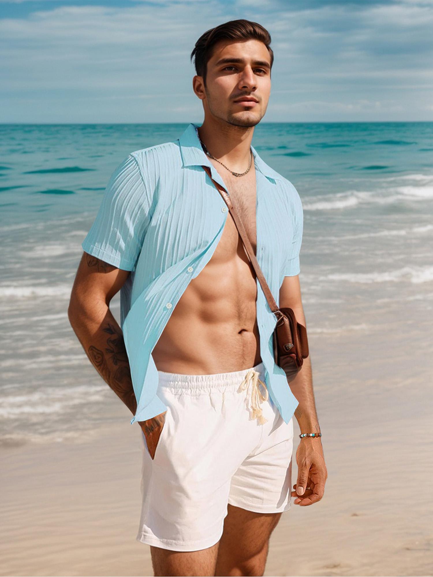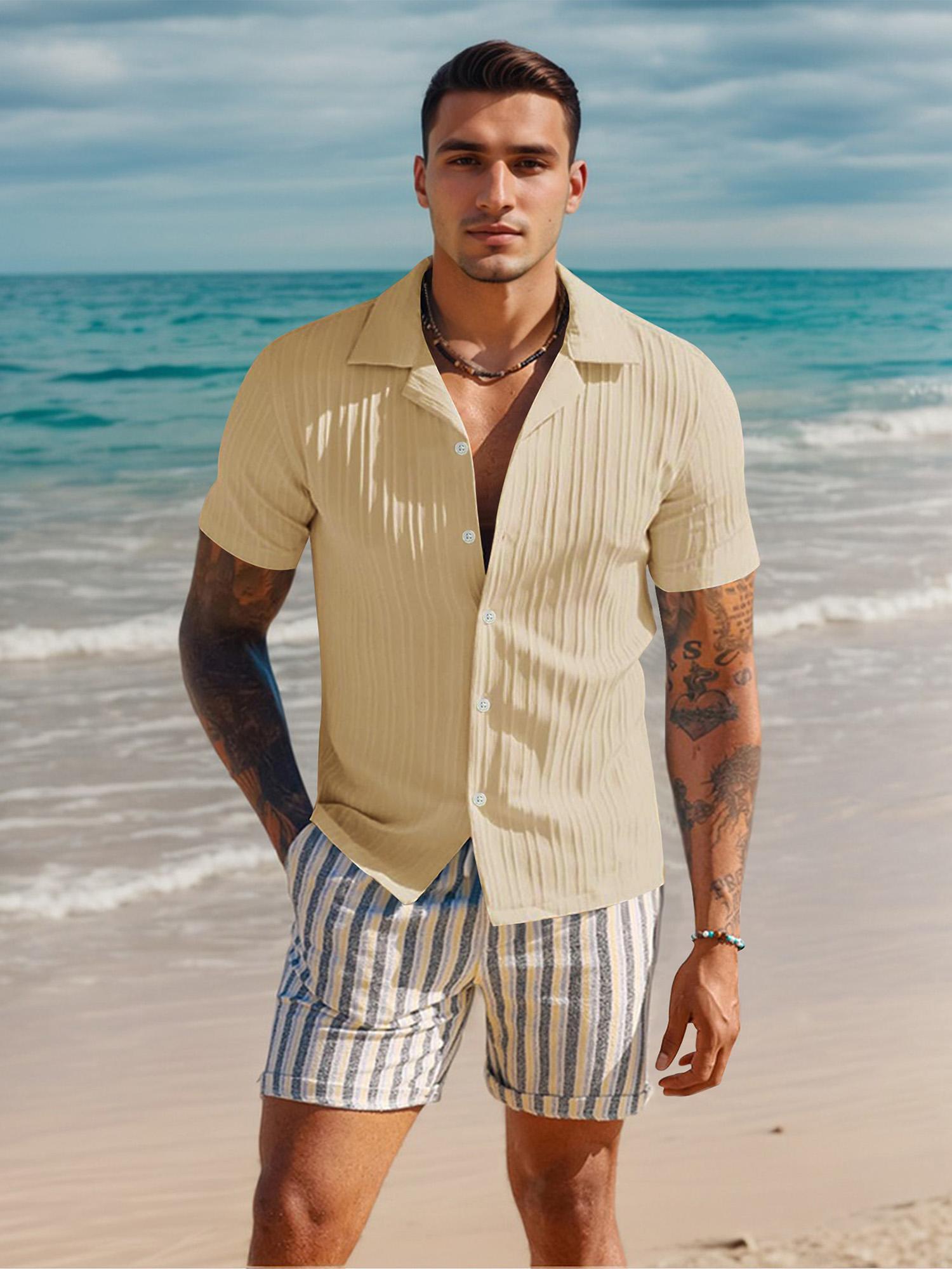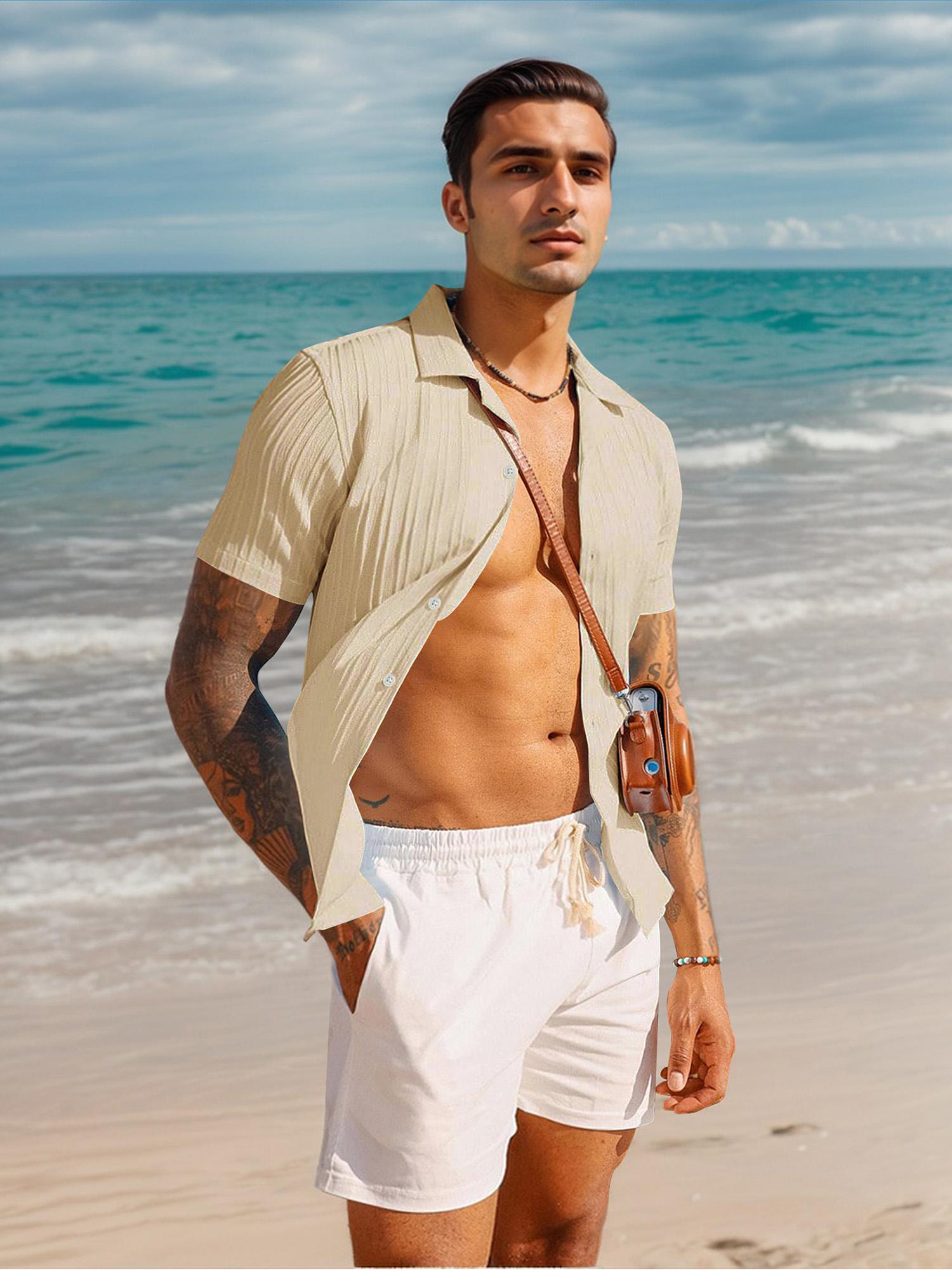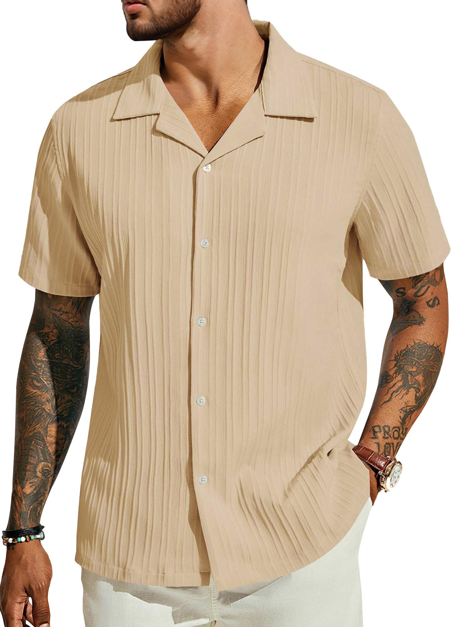 Men's Casual Button Down Shirts Short Sleeve Shirts Wrinkle-Free Shirts Textured Beach Shirts