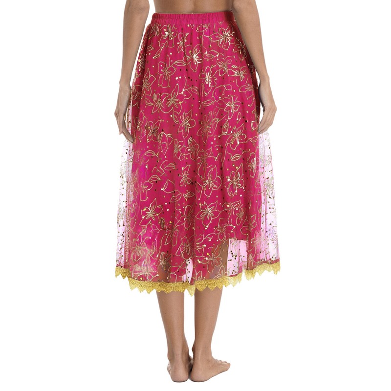 The shiny mesh fabric with gold trim is on-trend, adding a glamorous and eye-catching element to the skirt, making you stand out in the crowd.