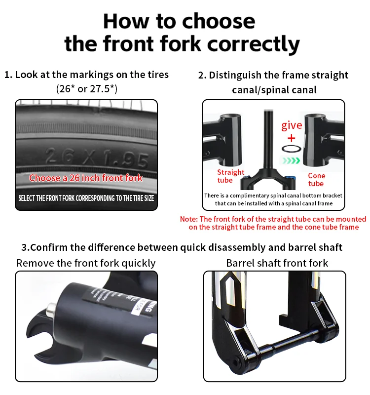 Tube: Straight(This front fork only has straight pipe, and with a bottom gear, it will be suitable for both straight pipes and spinal canal frames)