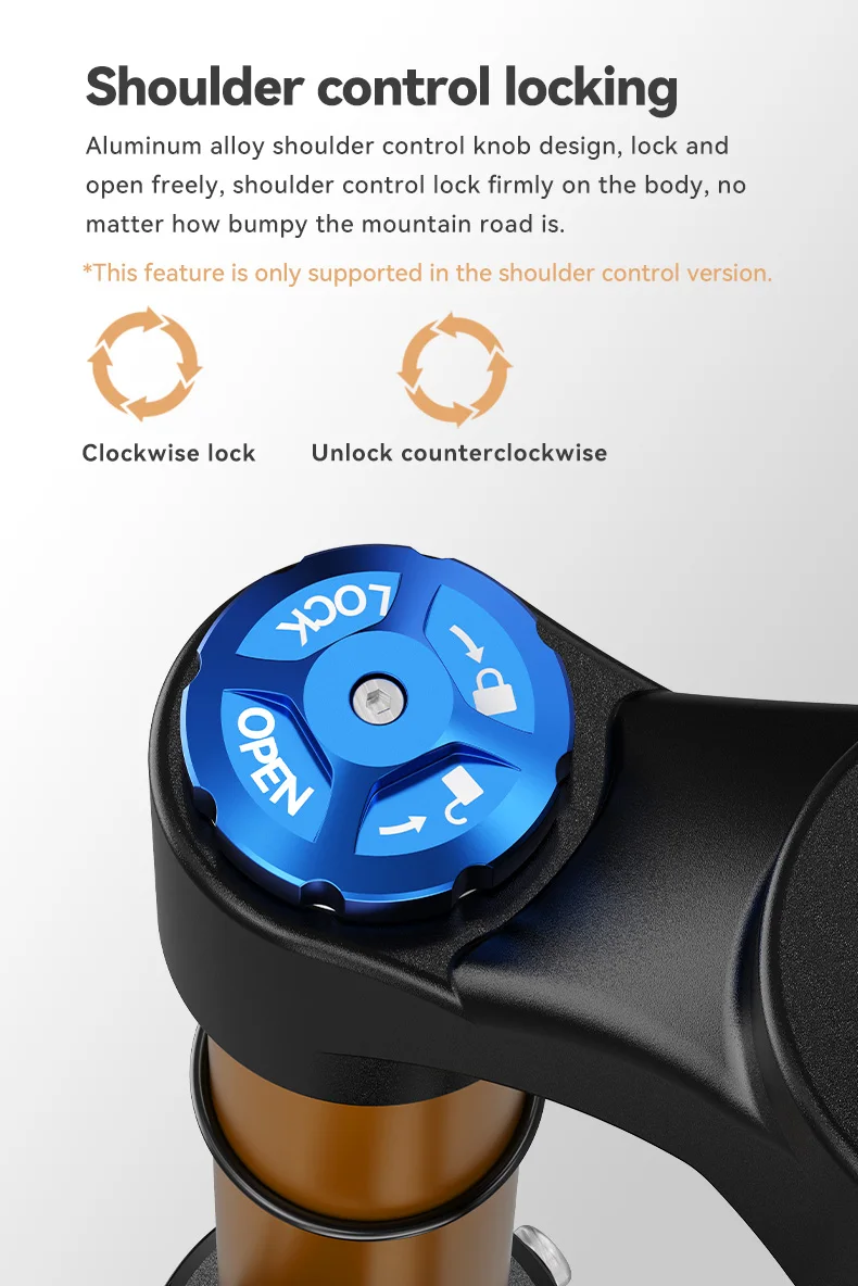 The shoulder control is the controlled rotation on the fork shoulder of the front fork, and the wire control is that the locking knob on the fork shoulder is changed to a wire control device, which can be installed on the handlebar, so that the locking and unlocking is easy and faster.More buyers choose wire control.