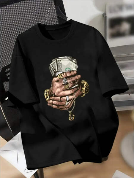 Crafted from high-quality, breathable fabric, this T-shirt ensures all-day comfort, allowing your little one to move freely and play with ease. The eye-catching money hands print adds a fun and playful touch, making it a favorite among young trendsetters.