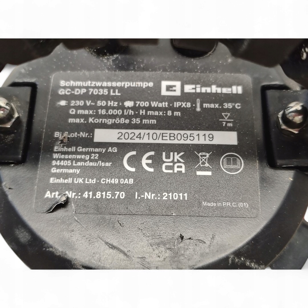 Robuste Pumpe – Das Gehäuse der Schmutzwasserpumpe besteht aus schlagzähem Kunststoff. Die Pumpe ist für Wasser mit maximal 35 mm großen Schmutzpartikeln geeignet.