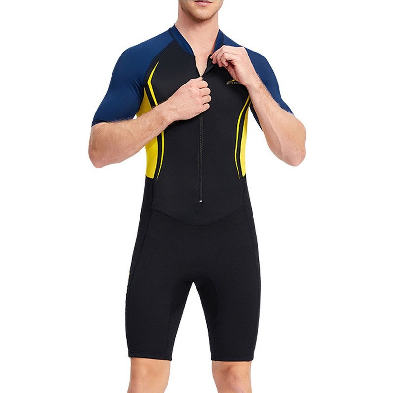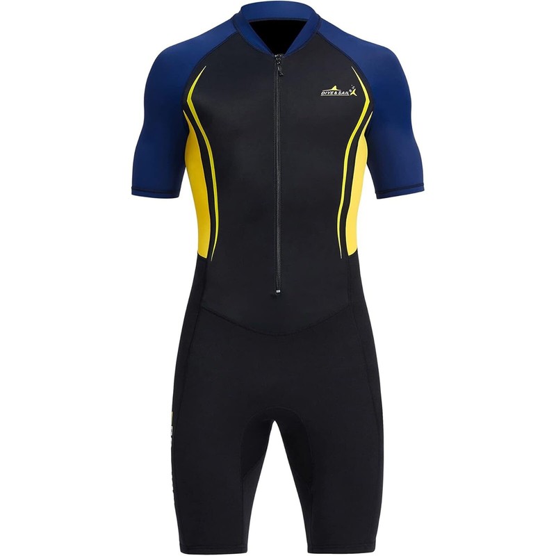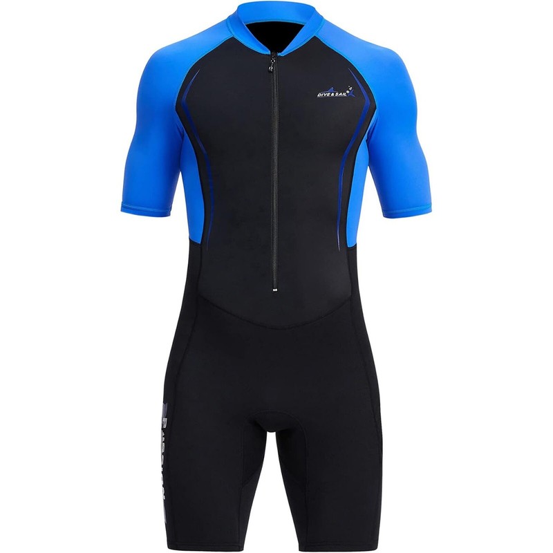 This men's short - sleeve one - piece athletic swimsuit is perfect for a wide variety of water activities including swimming snorkeling surfing diving keeping warm in cold water paddleboarding kayaking and beach outings