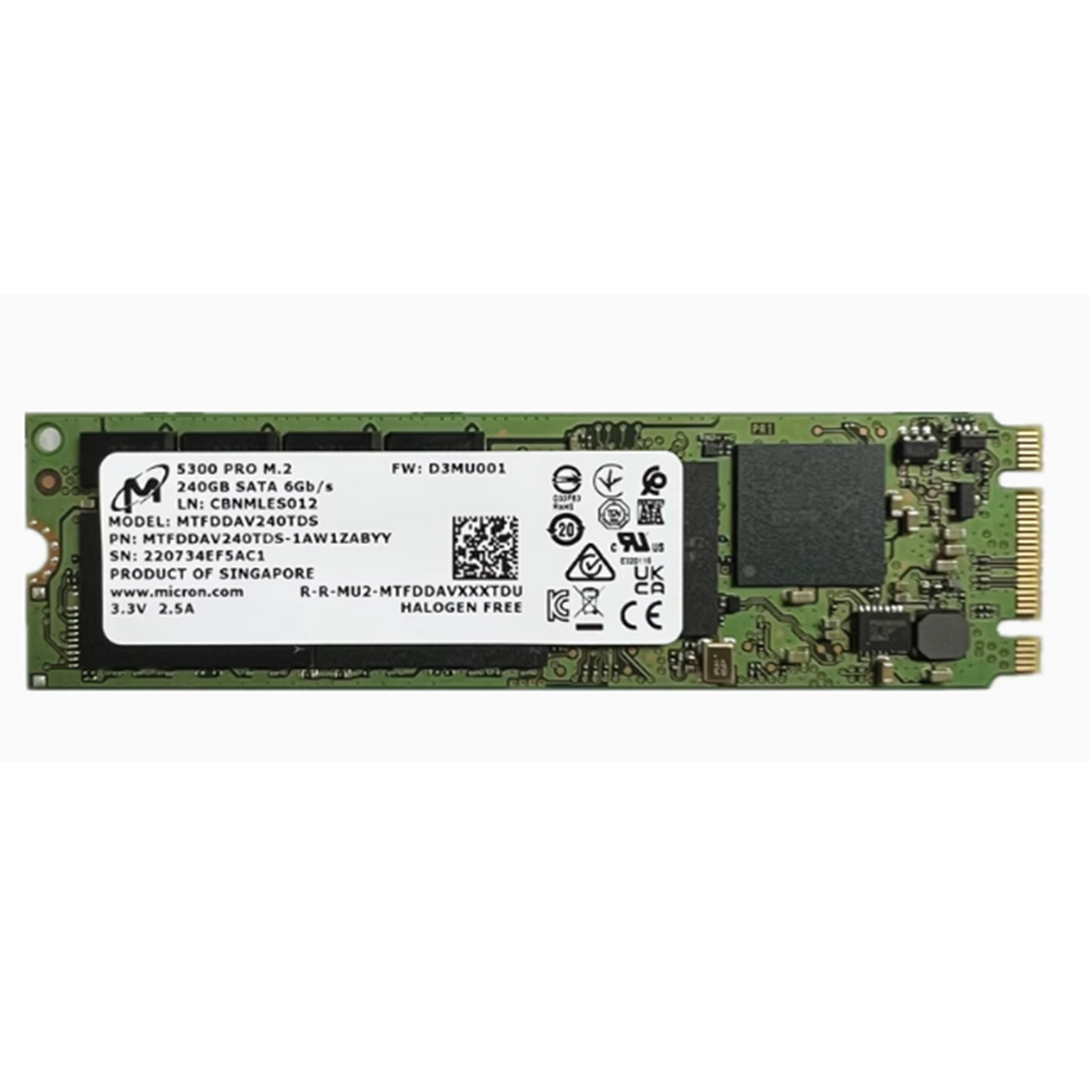 1x New Micron 5300 PRO 480GB M.2 SATA 6Gb/s MTFDDAV480TDS-1AW1ZABYY Solid State Drive