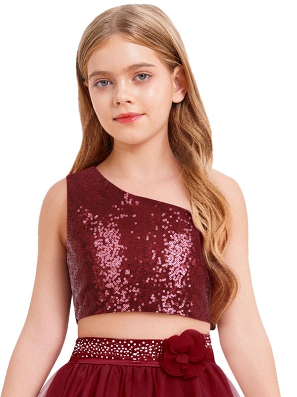 Crafted from a blend of polyester and sequins, this tops is both durable and sparkly, offering a comfortable and eye-catching fit for young girls.