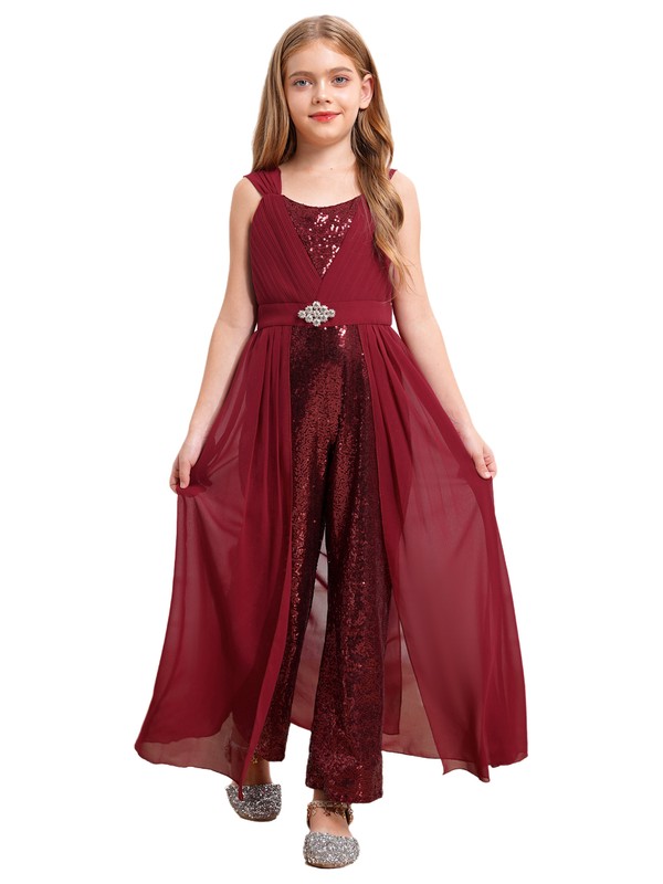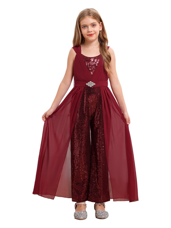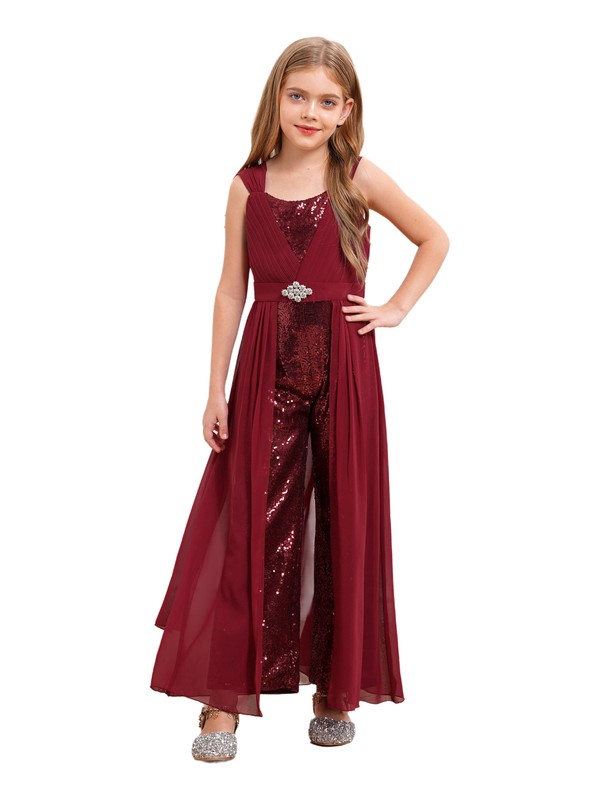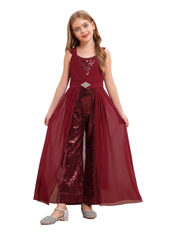 Sleeveless ruffled jumpsuit with chiffon belts design, your little girl will look elegant and graceful when she walks.