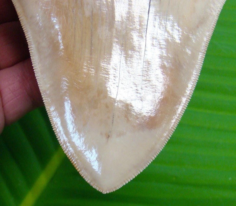 Unfortunately, many Megalodon teeth from Indonesia come with undisclosed repairs or restorations. Some sellers—particularly those shipping directly from Indonesia—blatantly misrepresent their specimens, falsely claiming they are 100% natural even when obvious restorations are clearly visible in their photos.