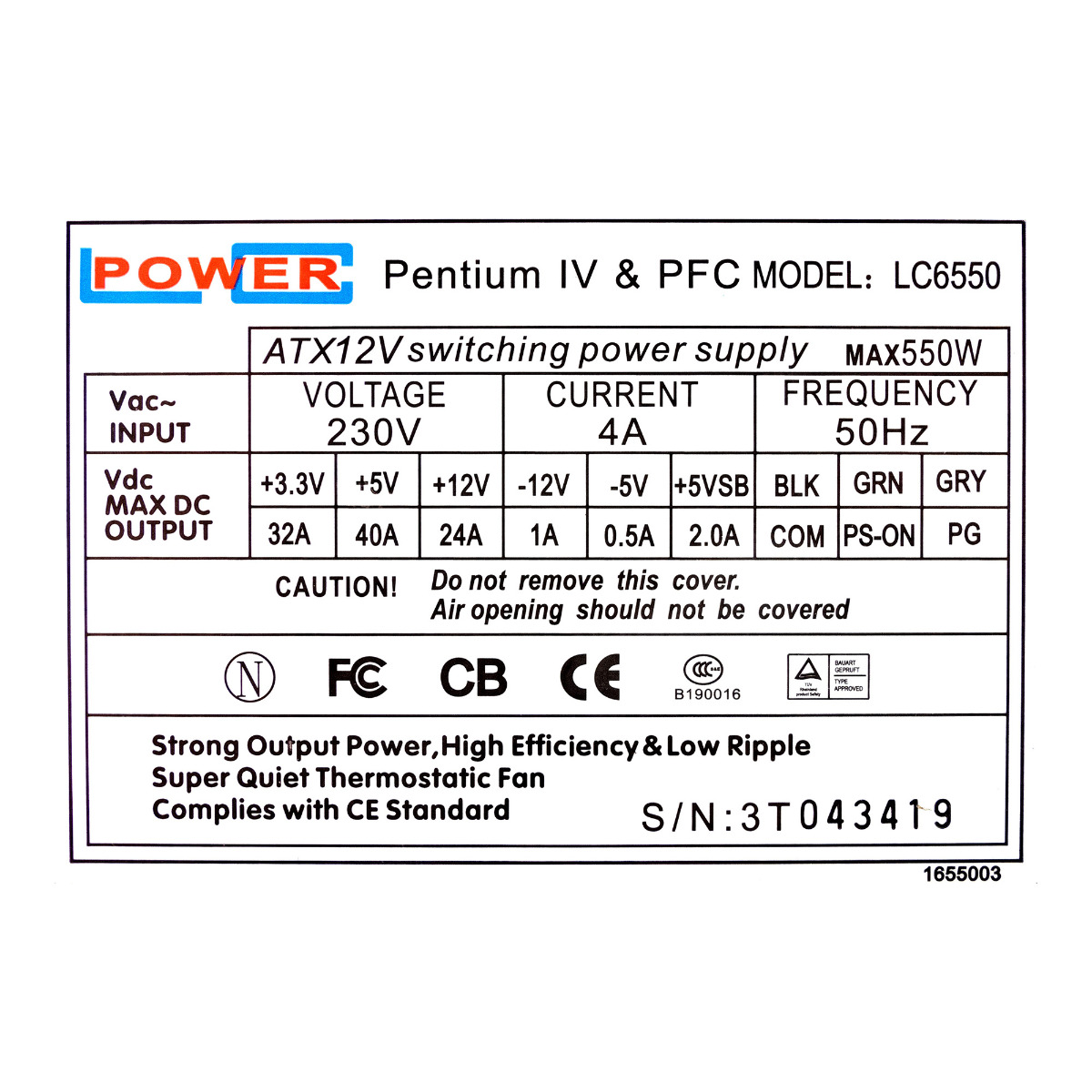 Netzteil LC-POWER LC6550 550W ATX 20-PIN ATX12V AUX 7x MOLEX 2x FDD