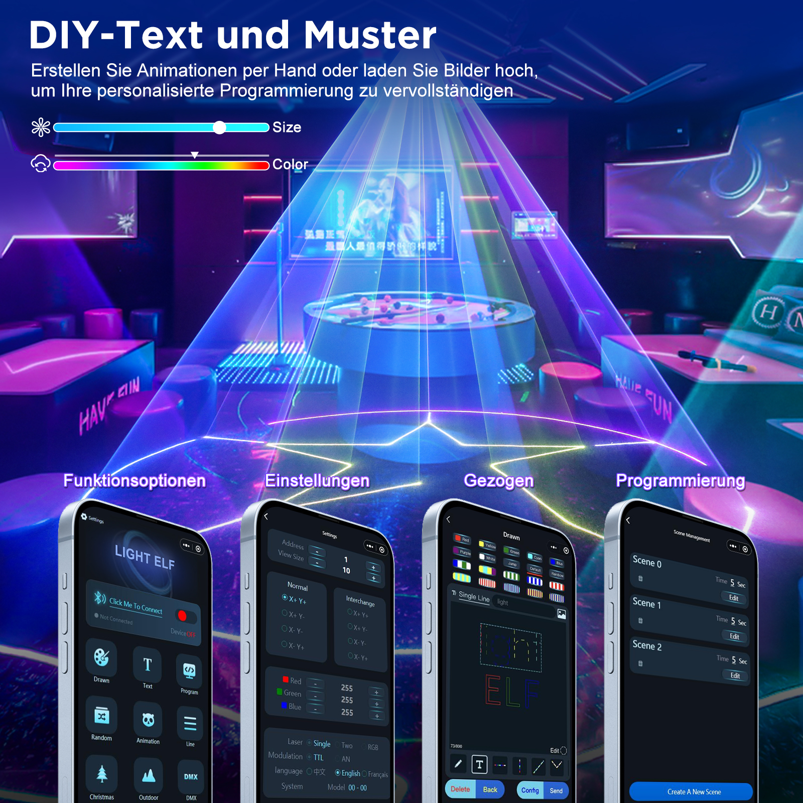 Produktmerkmale: 1.【Unterstützt mehrere APP-Funktionen】 einschließlich handgezeichneter Graffiti, Textwiedergabe, personalisierter Programmierung und integrierter Programmwiedergabefunktionen; kann den Anzeigeeffekt des Geräts steuern, indem man Muster manuell zeichnet, Text eingibt, LOGO-Bilder hochlädt oder integrierte Muster auswählt; kann Textanzeigeeffekte einstellen, unterstützt bis zu 100 Zeichen (Schriftgröße und -farbe können angepasst werden); kann 20 Szenen bearbeiten; kann alle integrierten Programme zufällig abspielen und kann auch abzuspielende Programme (Animation, Linien, Weihnachten, Outdoor) angeben. 2. 【Lichteffekte ständig aktualisieren】 Die integrierten Programme der Handy-App aktualisieren die Effektmaterialien von Zeit zu Zeit, damit Kunden sie verwenden können. 3. 【Verschiedene integrierte Bühneneffekte】 Wenn die Handy-App nicht verwendet wird, verfügt das Produkt selbst über einen sehr reichhaltigen integrierten Effekt, und die unterteilten Effekte sind auf verschiedene Nutzungsszenarien ausgerichtet (es gibt gezielte Programmeffekte wie Outdoor, Weihnachten und Neujahr), und die Linieneffekte und Animationseffekte sind sehr reichhaltig und eignen sich für Partys, KTV-Bars und andere Unterhaltungsmöglichkeiten. 4. 【Mehrere Steuerfunktionen】Mehrere Steuerfunktionen: selbstfahrend/Sprachsteuerung/DMX512/Handy-App.