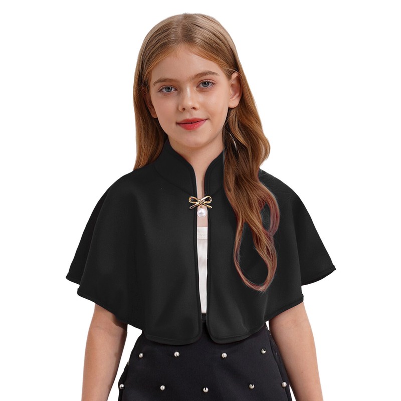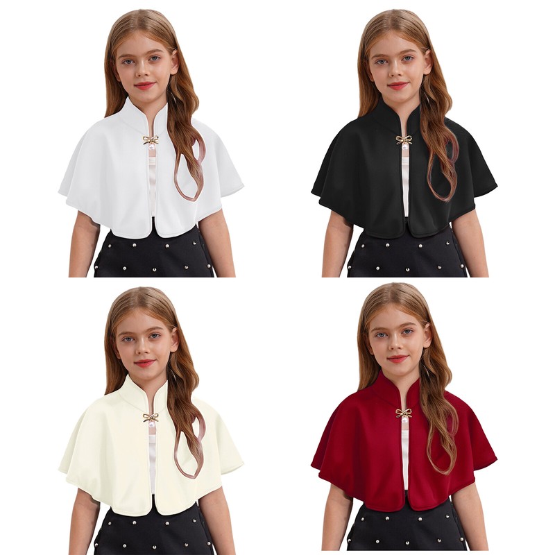 Mock neck and open front, nice edge for burr avoiding, solid color cape keeps girl warm when in outside.