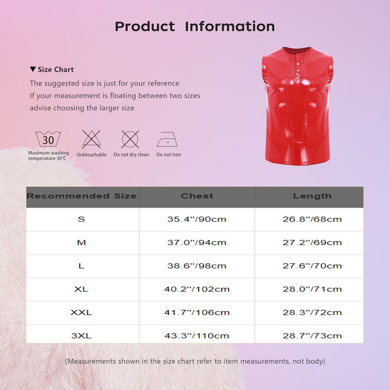 Men's Shiny Wet Look PU Leather Sleeveless Tank Top Jacket Party Nightout Club