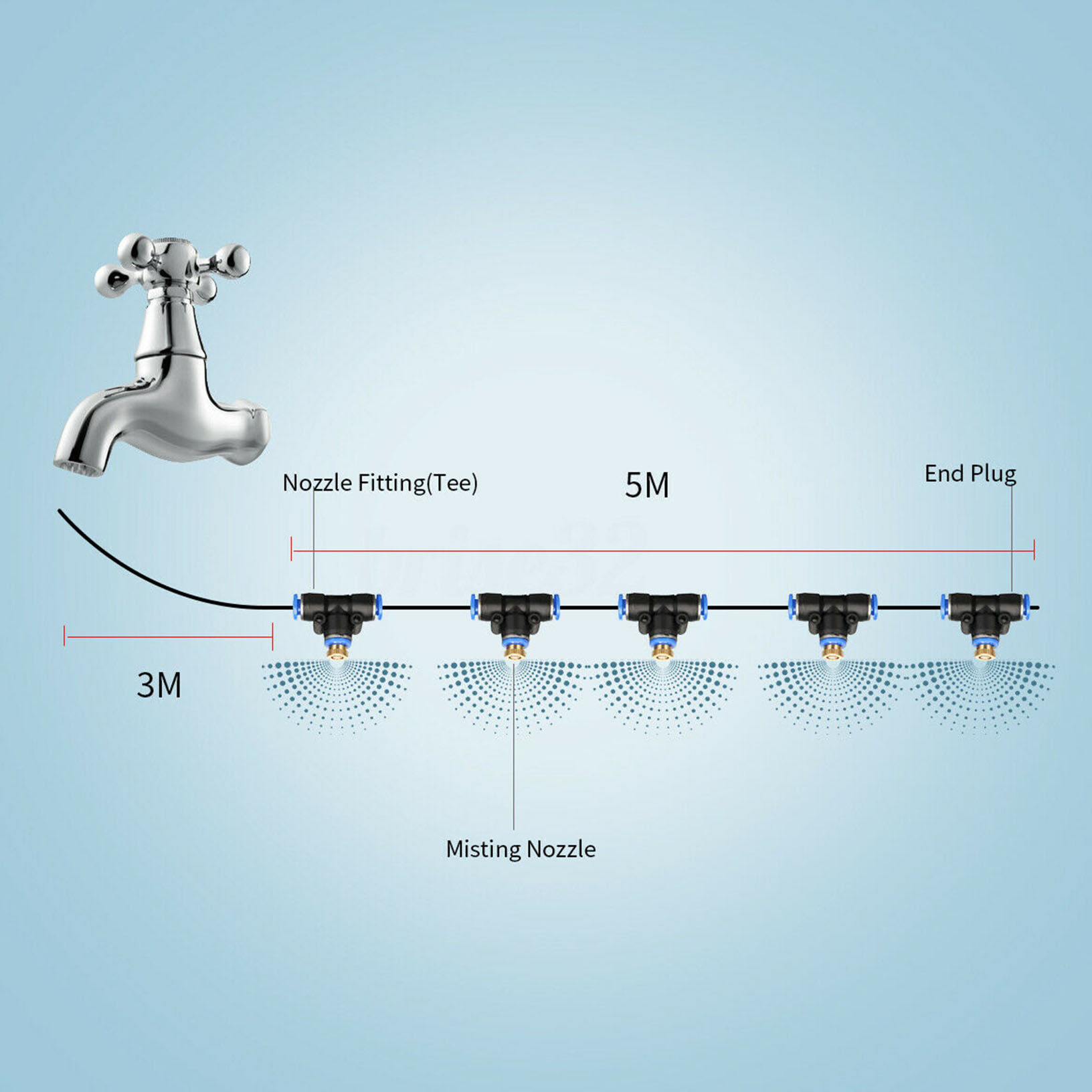 4. Ouvrez légèrement le robinet jusqu'à ce que les jets fonctionnent, profitez du système de brumisation rafraîchissant.