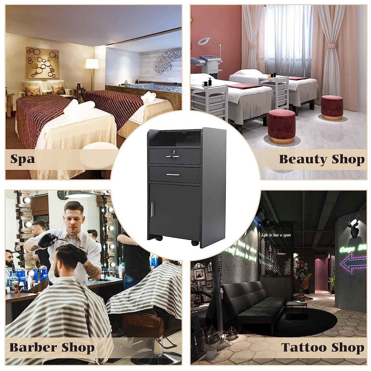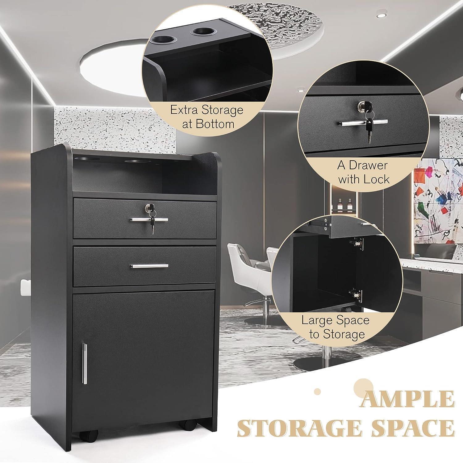 【Convinient Accessing】2 hot tool holsters for hot irons, blow-dryers, and other heated tools.They are right at the top, which is the easiest place to reach. There is a small open space over the drawer, making this trolley very convenient and integrated.