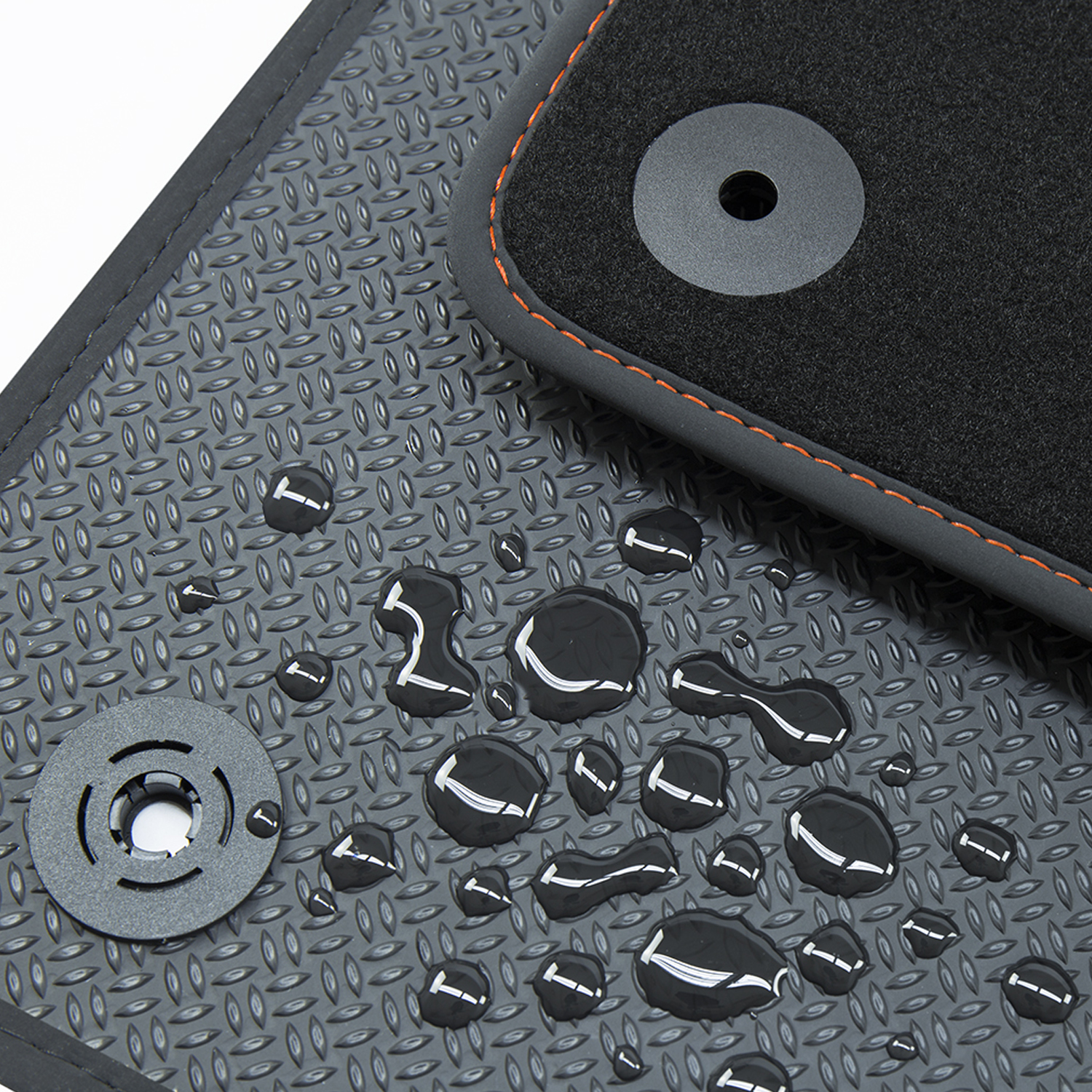 Dank der Velours Oberseite bleibt Ihnen der edle Look der Fußmatten in Ihrem Fahrzeug erhalten.