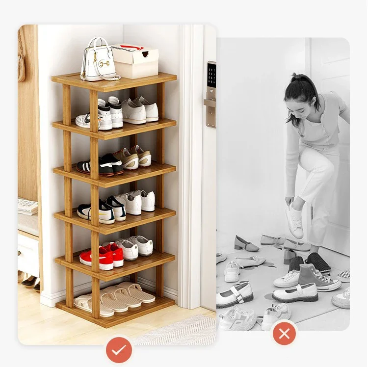 Bamboo Simple Shoe Rack Multi-layer Shoe Rack Household Doorstep Storage Rack Small Household Shoe Storage Tool Corner Organizer