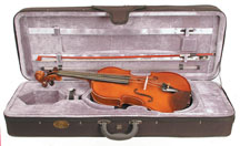 Featuring carved solid spruce top, solid maple back and sides, inlaid purfling, blackened rosewood fingerboard, rosewood pegs and chin rest, Red Label strings, alloy tailpiece with four string adjusters, nylon tailpiece loop. Polished brown lacquer finish. Includes wood horsehair bow and lightweight canvas covered case with exterior shoulder rest compartment.