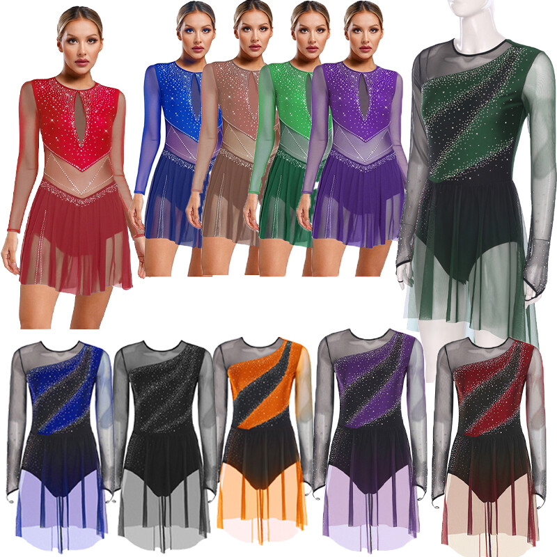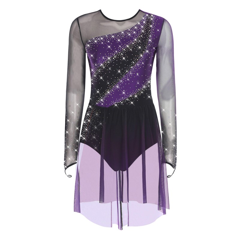 The shiny rhinestones and sheer mesh bring a sense of luxury and sparkle, making it perfect for figure skating, dance performances, competitions and other occasions.