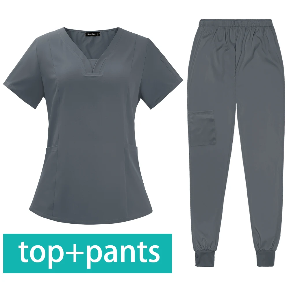 Women Medical Uniforms Stretch Scrubs Sets Hospital Surgical Gowns Short Sleeve Tops Pant Nursing Accessories Doctors Clothes