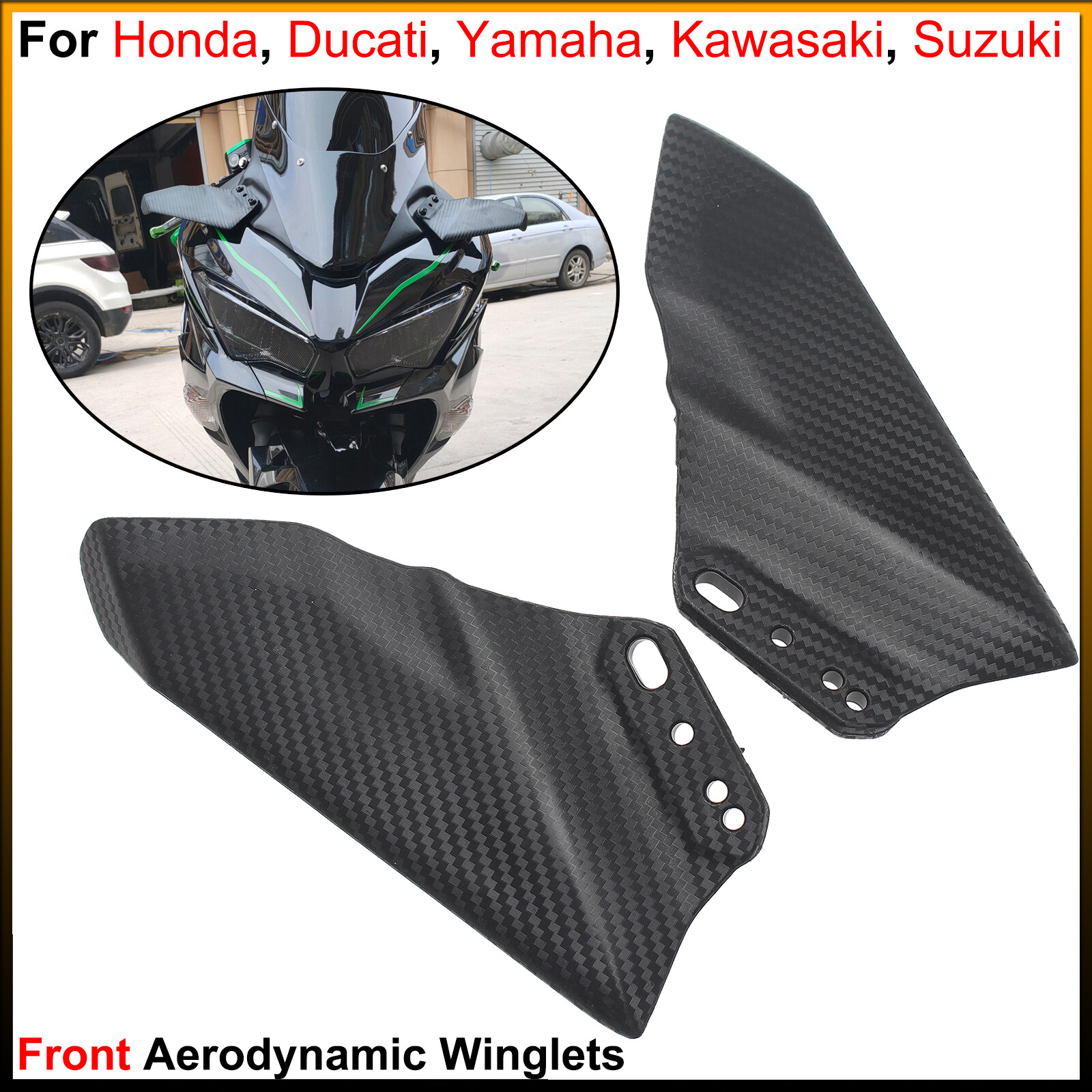 Front Aerodynamic Winglets Wings Side Fairing Spoiler Carbon fiber pattern ABS