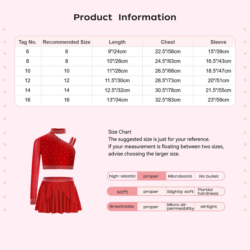 | Tag No. | Recommended Size | Tops Length | Chest | Skirt Length | Skirt Waist |