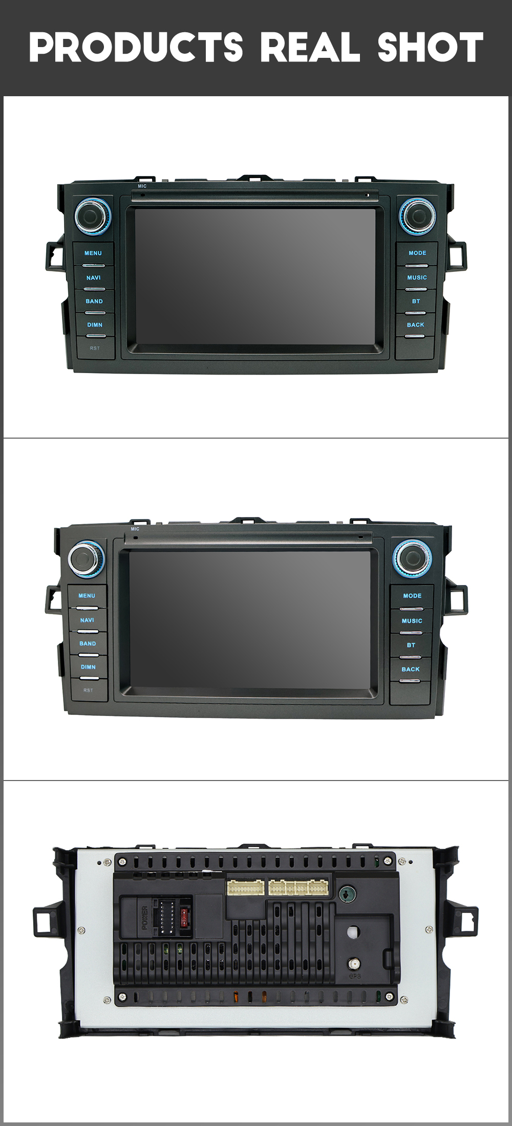 General | - Power Supply: DC 12V (allowance range: 10.8-14.5V) - Max. Current: 10A - Screen Size: 7 inch - Front panel Size: As picture show |