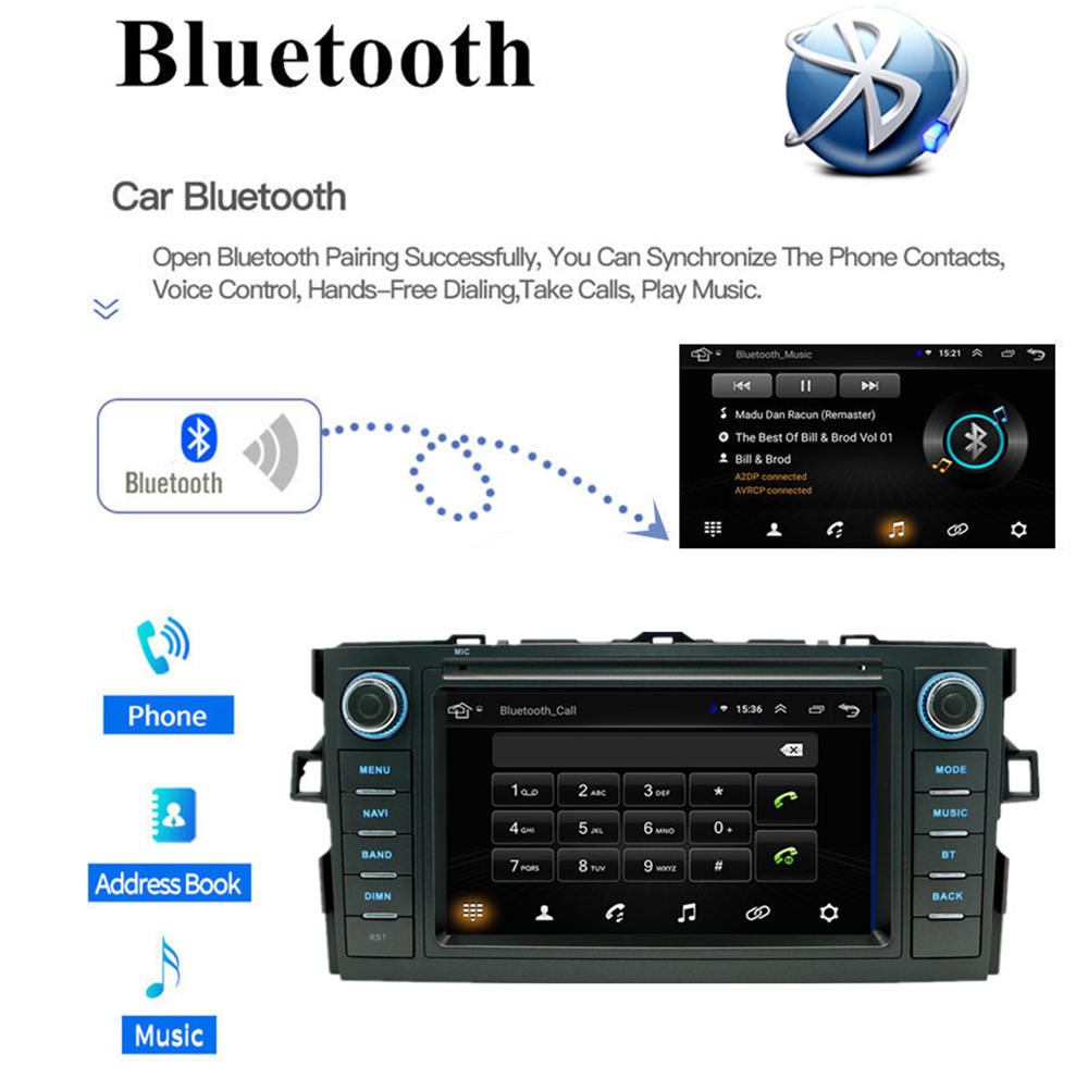Bluetooth | - Hands Free: Yes - A2DP (Bluetooth Stereo Music): Yes, can play stereo music through Bluetooth - Bluetooth Music Control: Yes, play/pause/previous/next - PB-Download: Yes, can download phonebook from mobile to this unit - PB-Search: Yes, can use the first letter to search contact member in PB-Listings - Calling Records: Yes, Dialed Call, Received Call, Missed Call - Setup: Auto Answer, Auto connect, Device name - Built-in Microphone: Yes, on the front panel - External Microphone Jack:Yes on the RCA cable |
