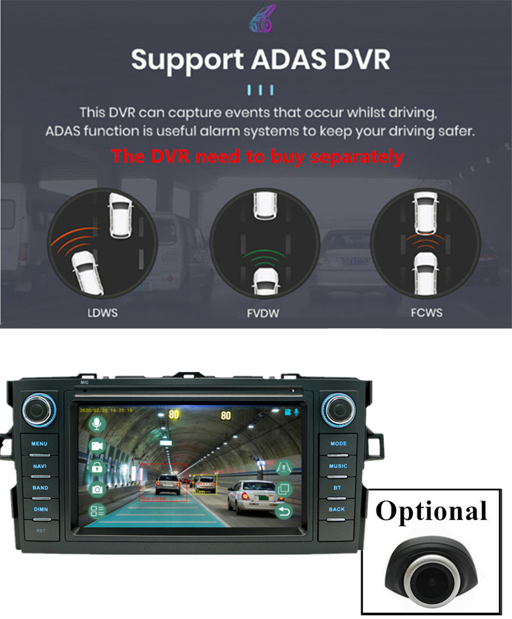 DVR | - Built-in Car Recorder App: Yes, just connect a USB Camera to use this function - Support HD CCD Camera: Yes - Play recorded Video directly: Yes - Storing Position: Nand Flash/GPS Card/SD Card/USB Storage can be changed |