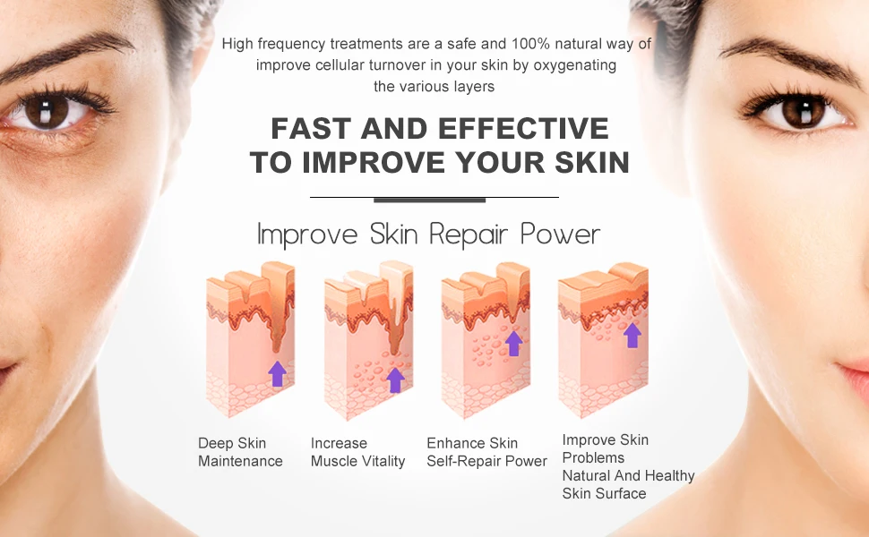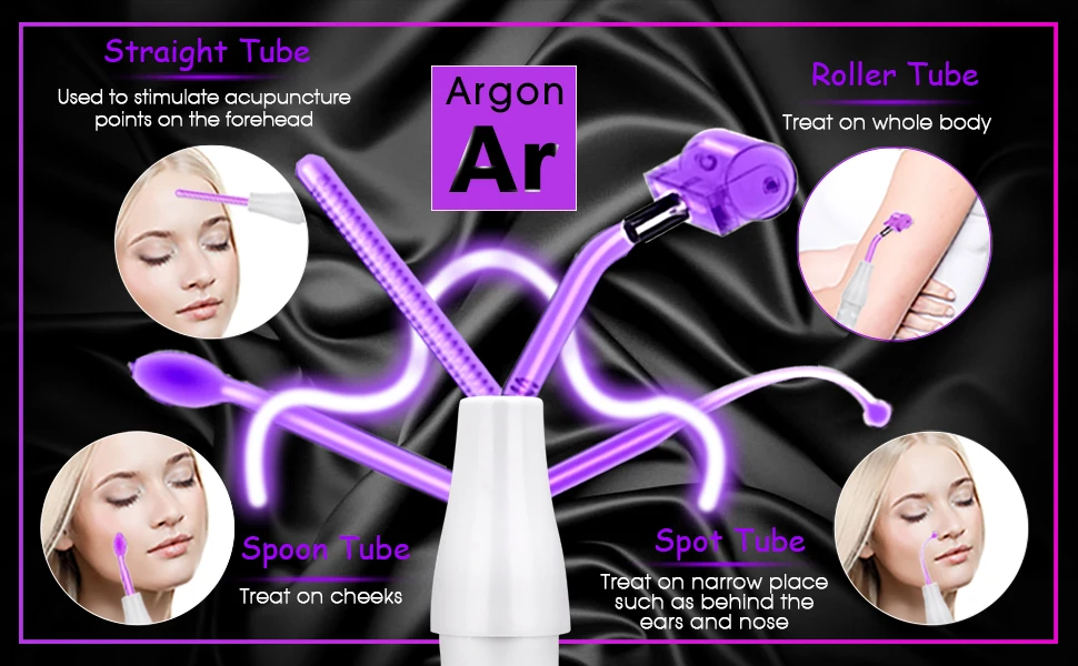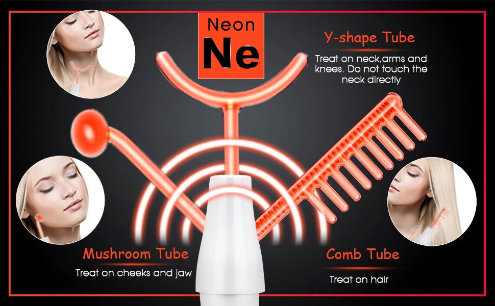 Please grease essence and cream on the face first and then the hold the metal bar to put the glass tube on face.Turn on the machine.