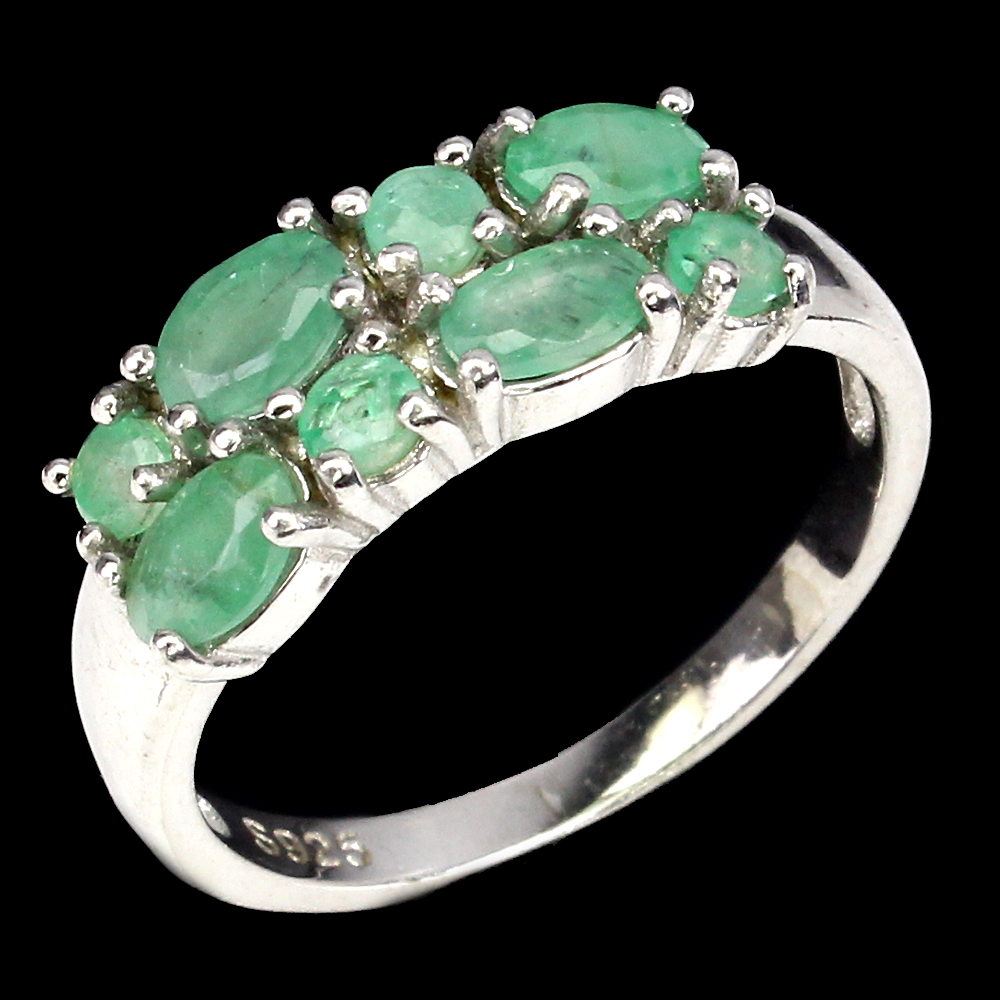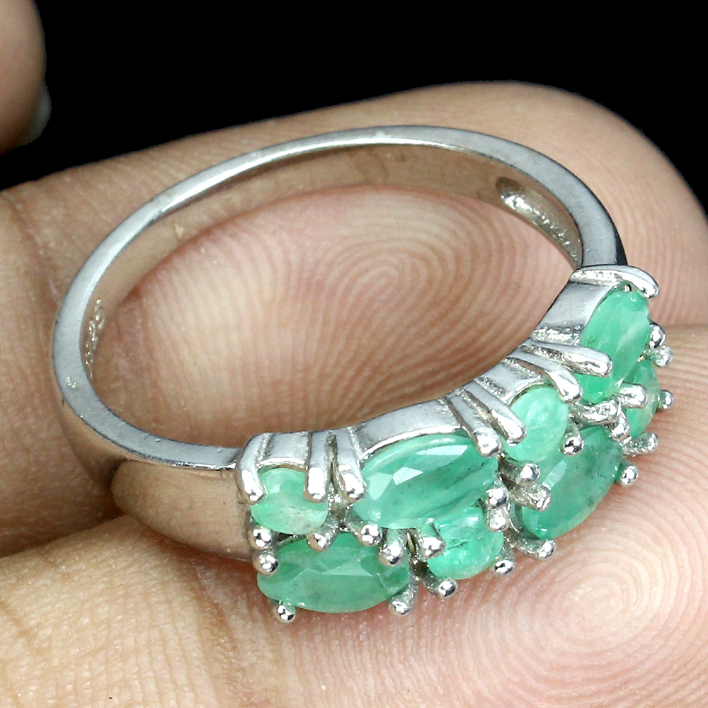 Unheated Oval Emerald 5x3mm 14K White Gold Plate 925 Sterling Silver Ring