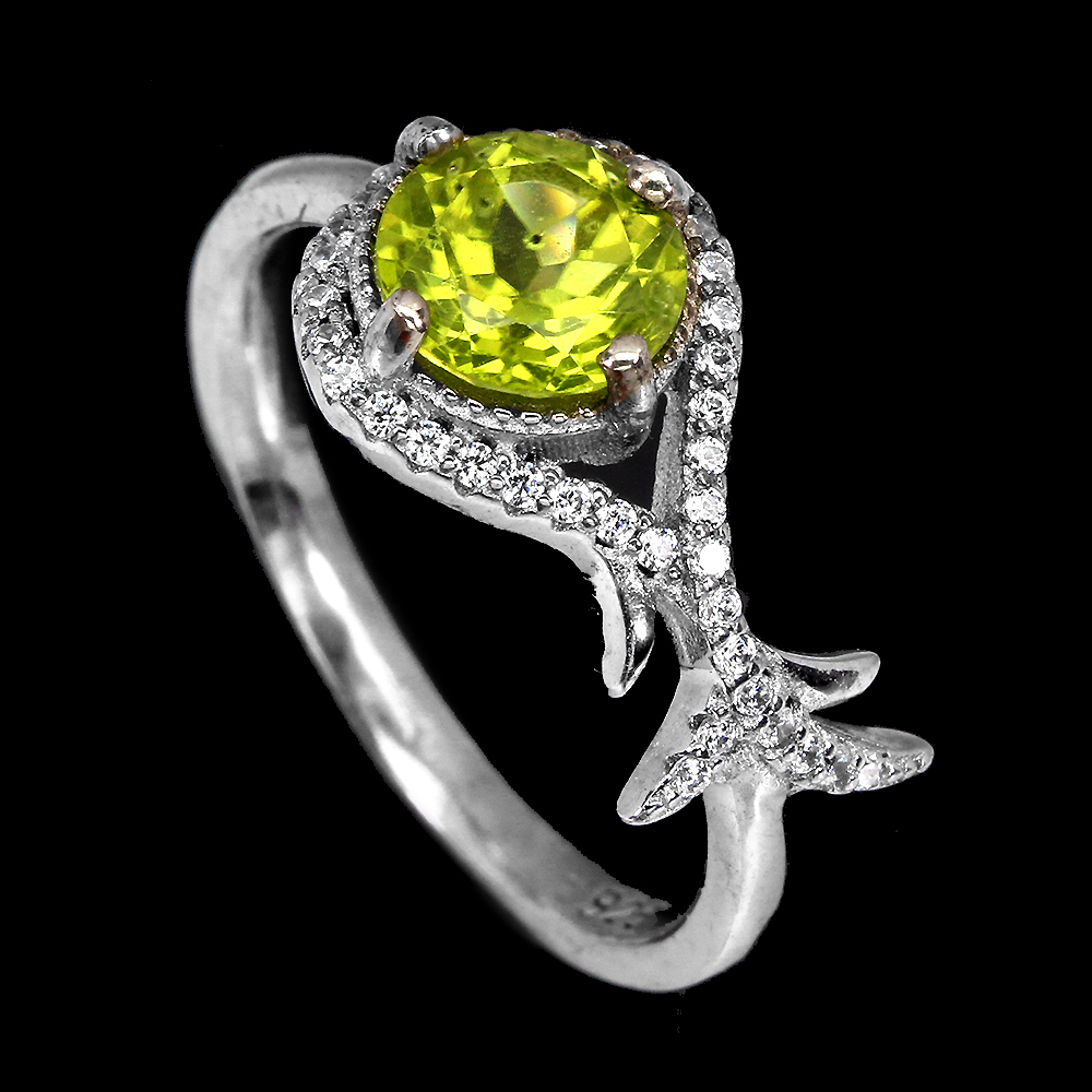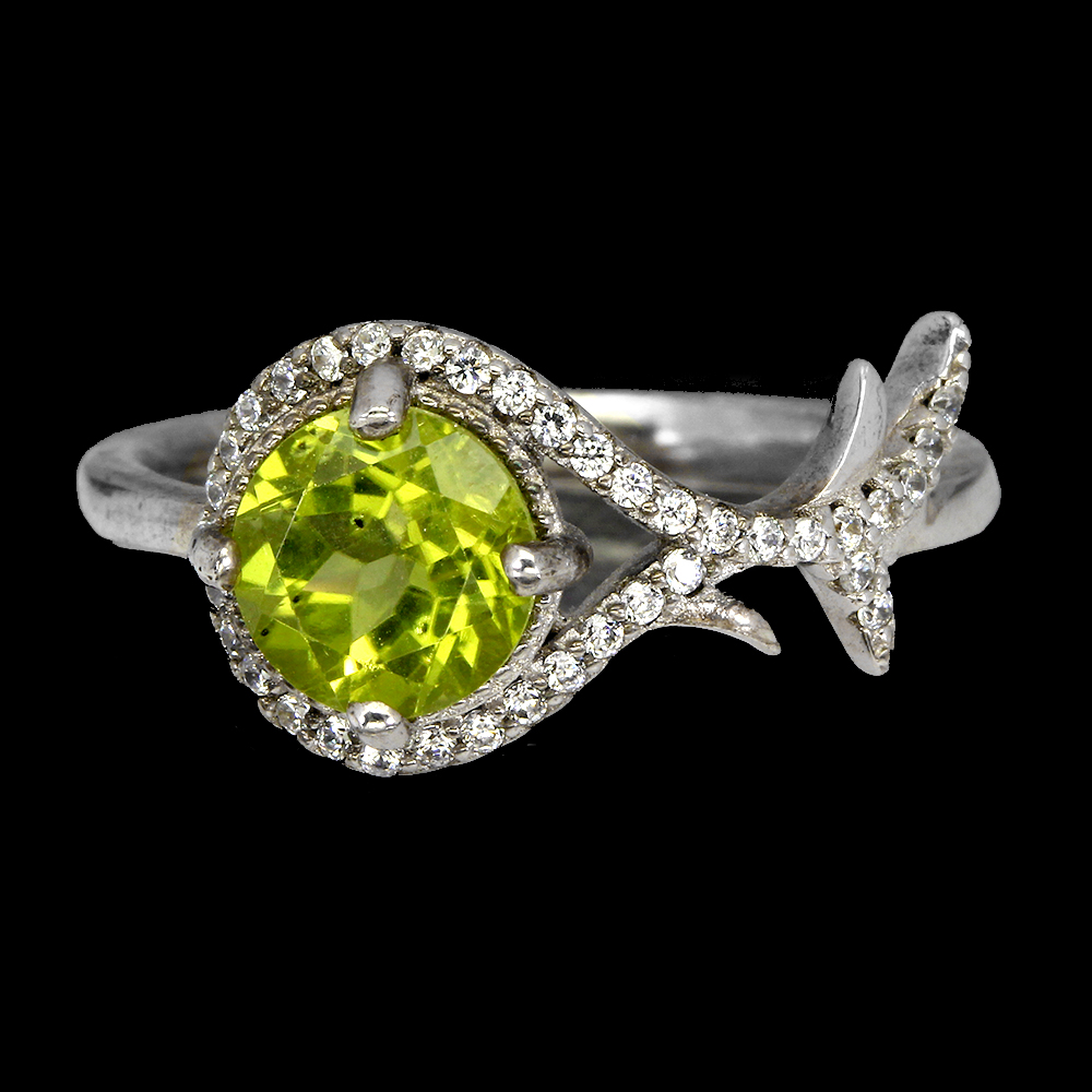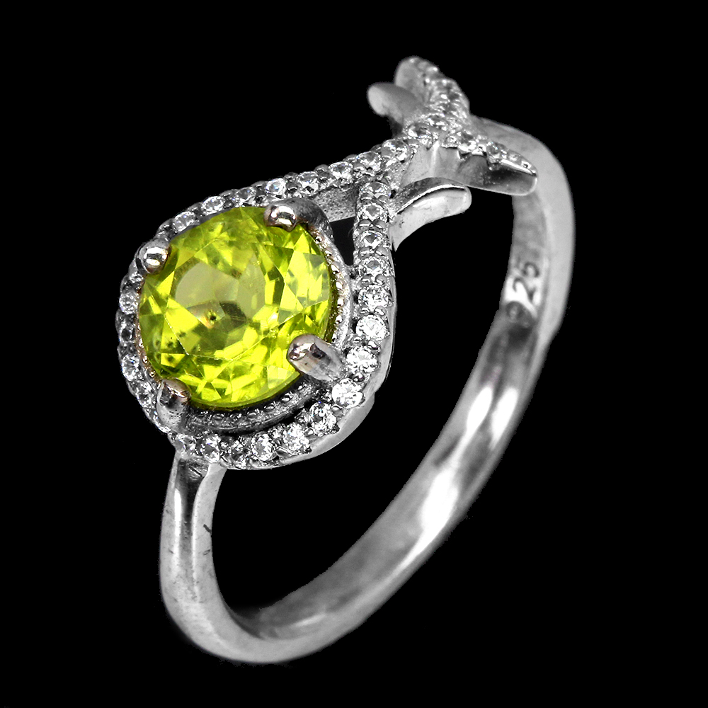 Unheated Round Green Peridot 7mm Simulated Cz 925 Sterling Silver Ring