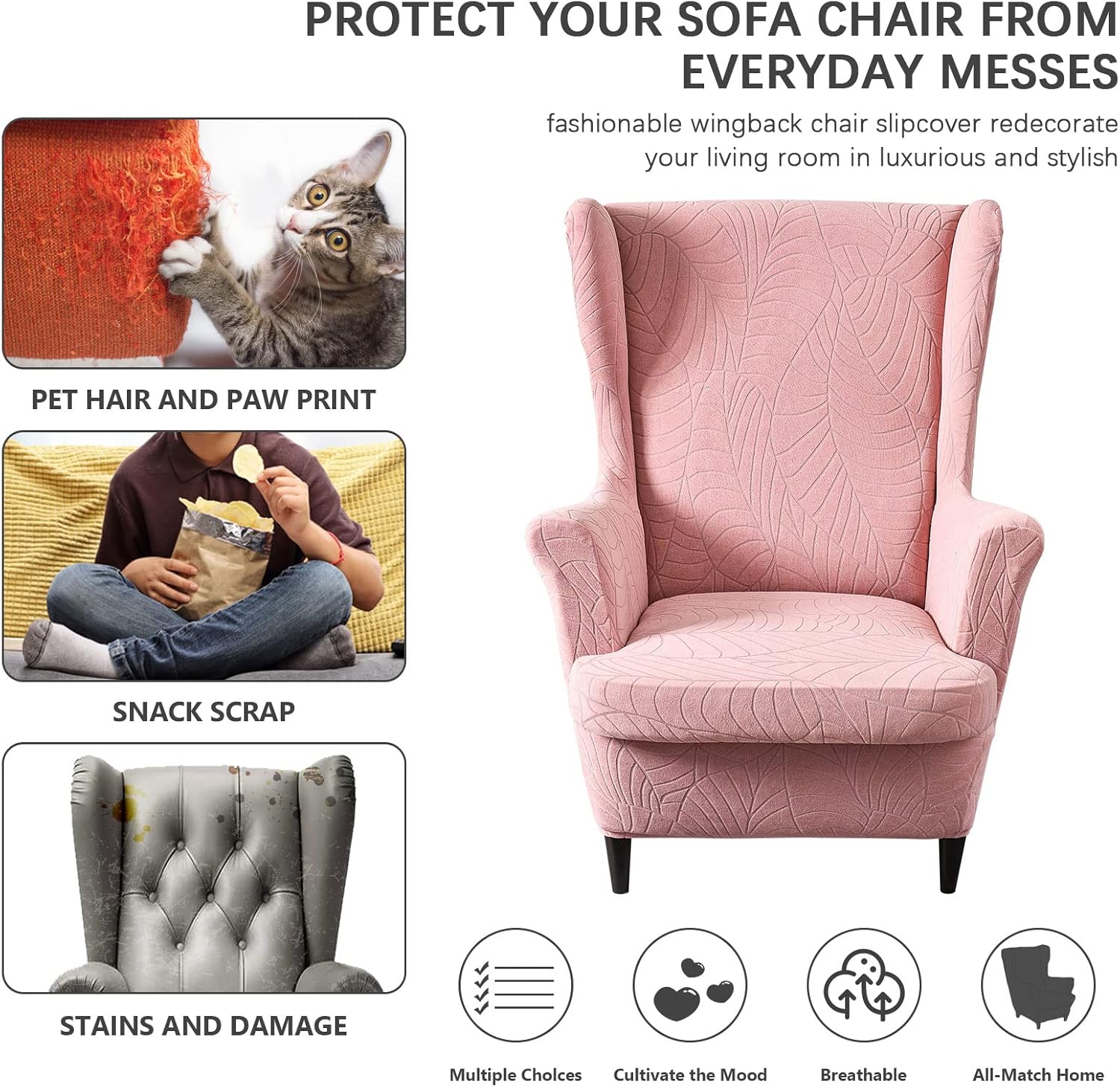 STAY IN PLACE: This upgraded wing chair slipcover is sewn with strong elastic band on bottom. It will cover the furniture bottom tightly. Hassle free for slip again, keep staying in place firmly. Suitable for both leather/fabric sofa