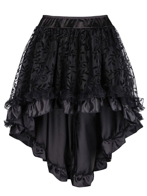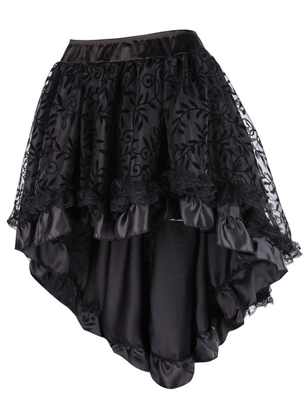 The medieval Gothic style with ruffled trim and high-low hem is a trendy and eye-catching design, bringing a touch of Victorian charm and a spooky yet fashionable vibe.